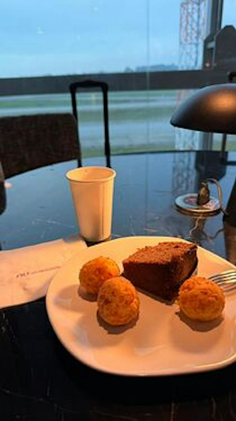 Lounge Ultravioleta no Aeroporto de Guarulhos (GRU): O espaço é bem acolhedor. Ficaria horas ali só admirando os detalhes e a vista para o pátio e a pista de decolagem. Quando estive lá, era horário de café da manhã — muito gostoso, por sinal. O bar e o café estavam fechados (funcionam à tarde). Fiquei com vontade de experimentar o drink roxo do Nubank e dar aquele “susto no fígado” logo cedo