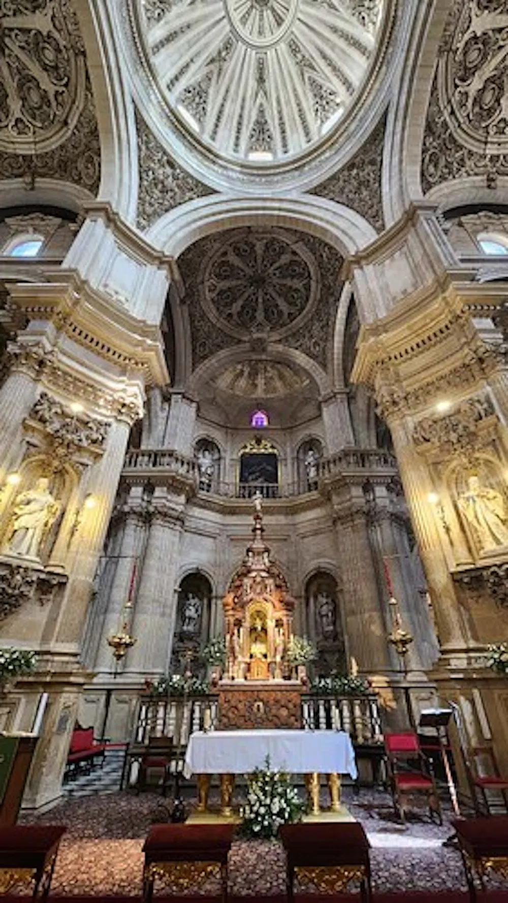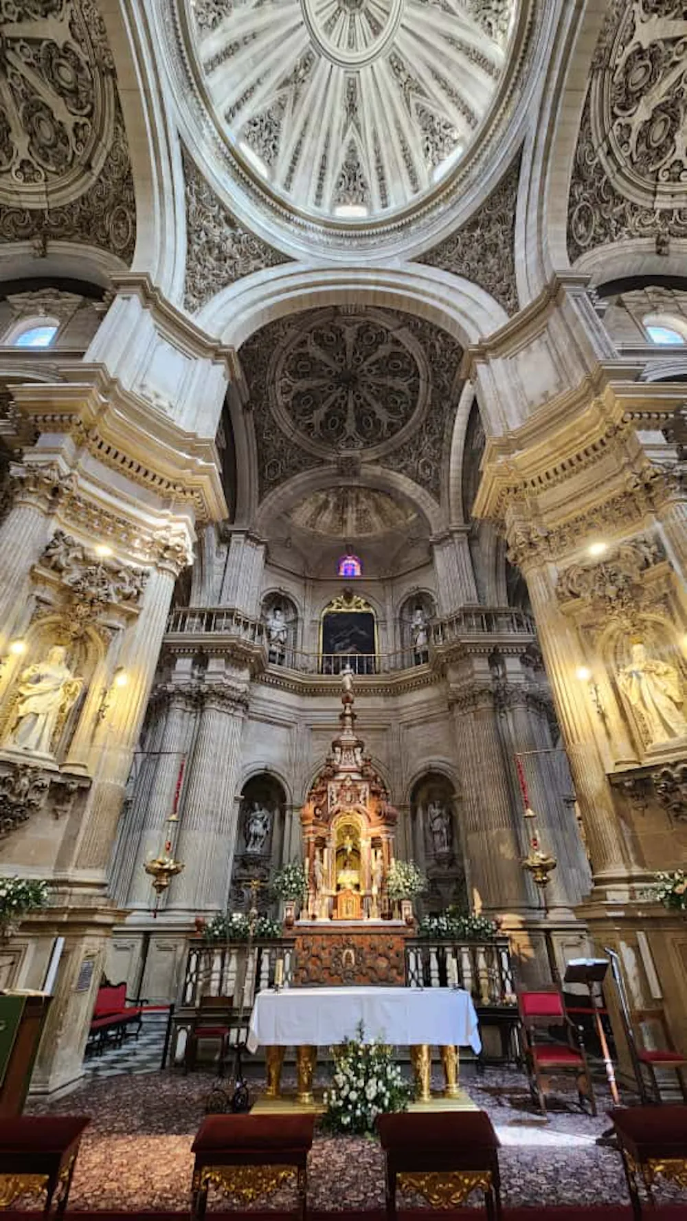 A Catedral de Granada, menor, mas profundamente espiritual, me tocou de um jeito inesperado – fiquei longos minutos apenas observando, em silêncio.