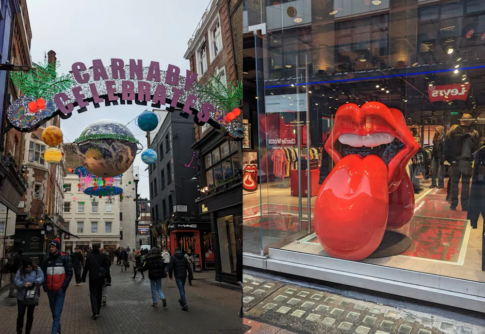 Por lá, você encontra lojas independentes, marcas alternativas e concept stores incomuns, com vitrines sempre muito criativas. Além disso, a região do Soho ao redor de Carnaby é repleta de pubs históricos e restaurantes ótimos – vale dar uma espiada!