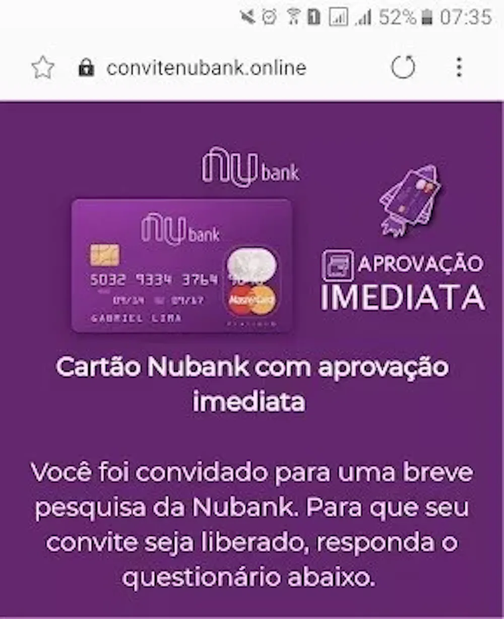 🔵 “Cartão Nubank com aprovação imediata ”? Não caia nesse golpe!