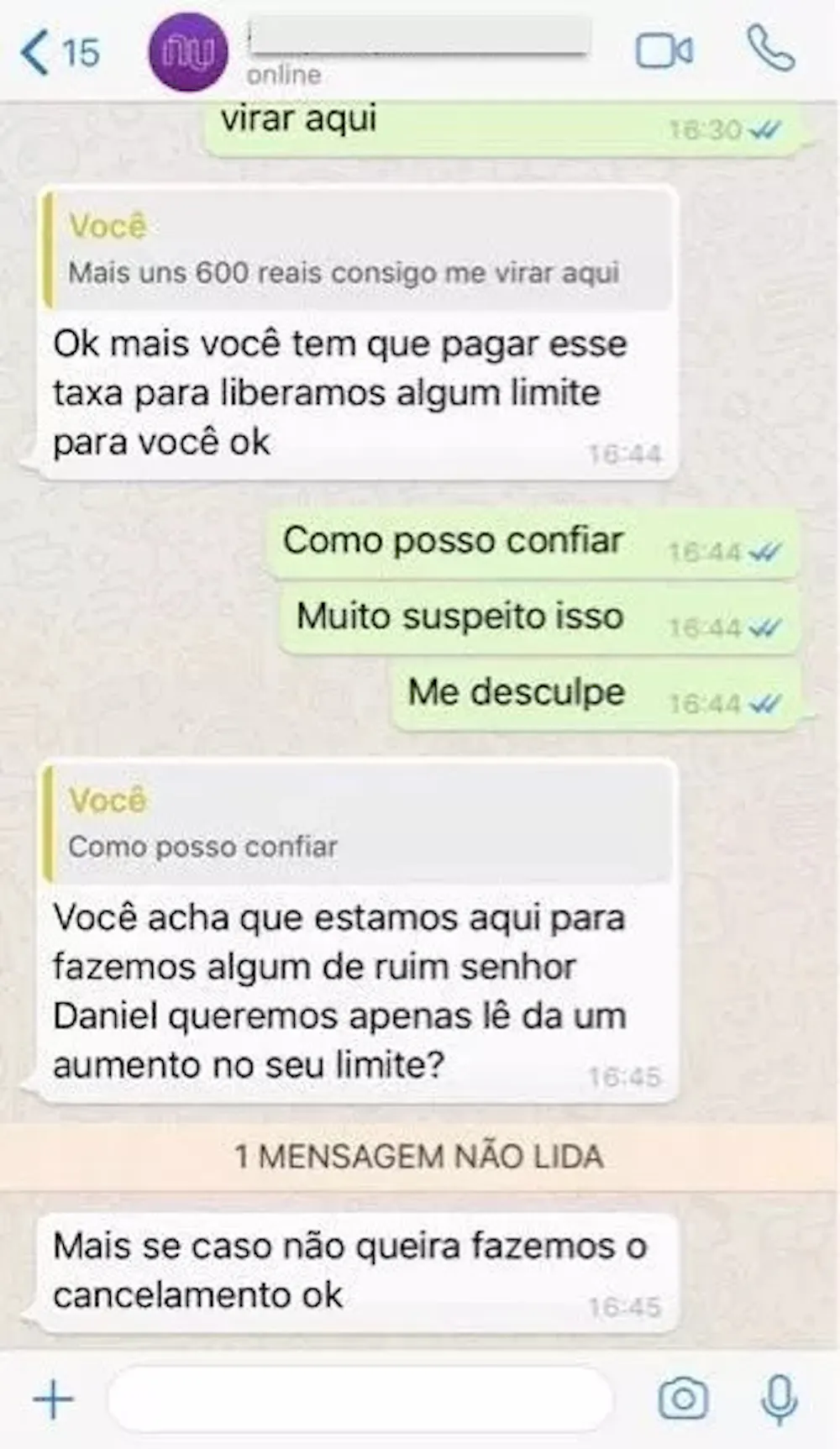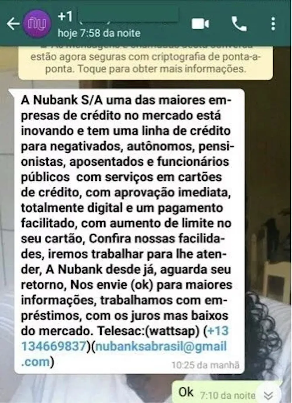 Recebeu uma mensagem prometendo aprovação ou limite pré-definido no cartão Nubank? É cilada.