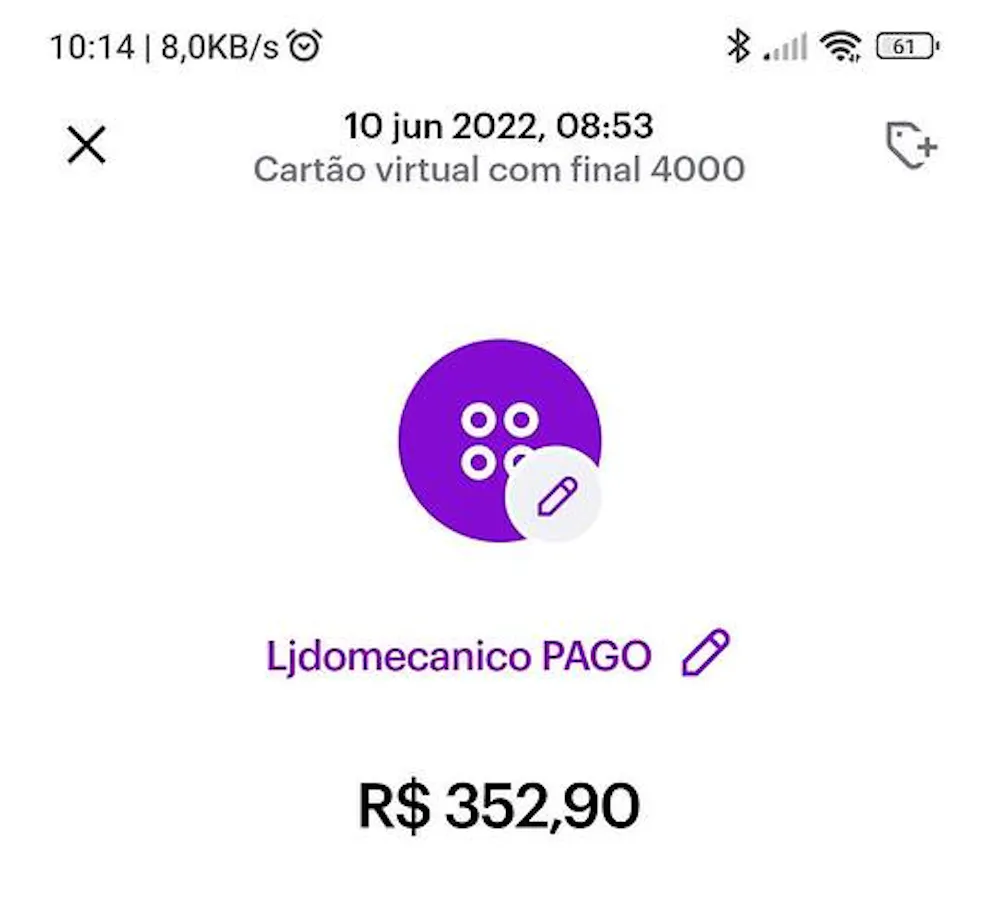 Nas fotos eu adicionei o nome “PAGO” na compra, mas não aparece a alteração na lista da fatura.