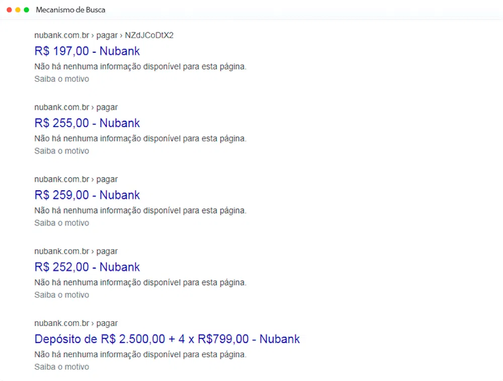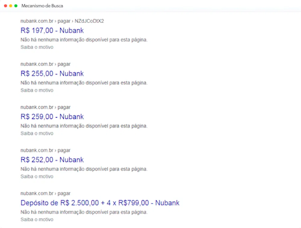 Além disso, alguns mecanismos de busca estão indexando continuamente as páginas de cobrança, onde revela dados sensíveis dos clientes como CPF, nome completo e outros.