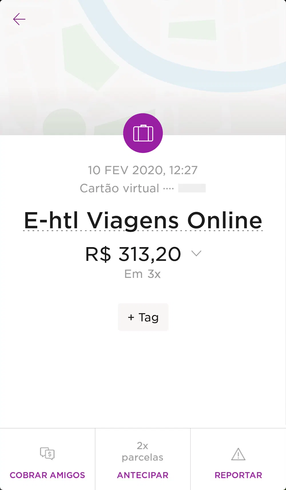 Recentemente notei que a função Cobrar da NuConta está presente nas compras do roxinho.
