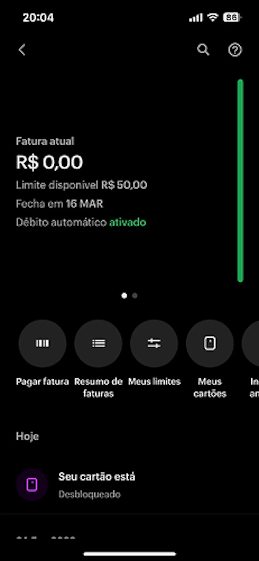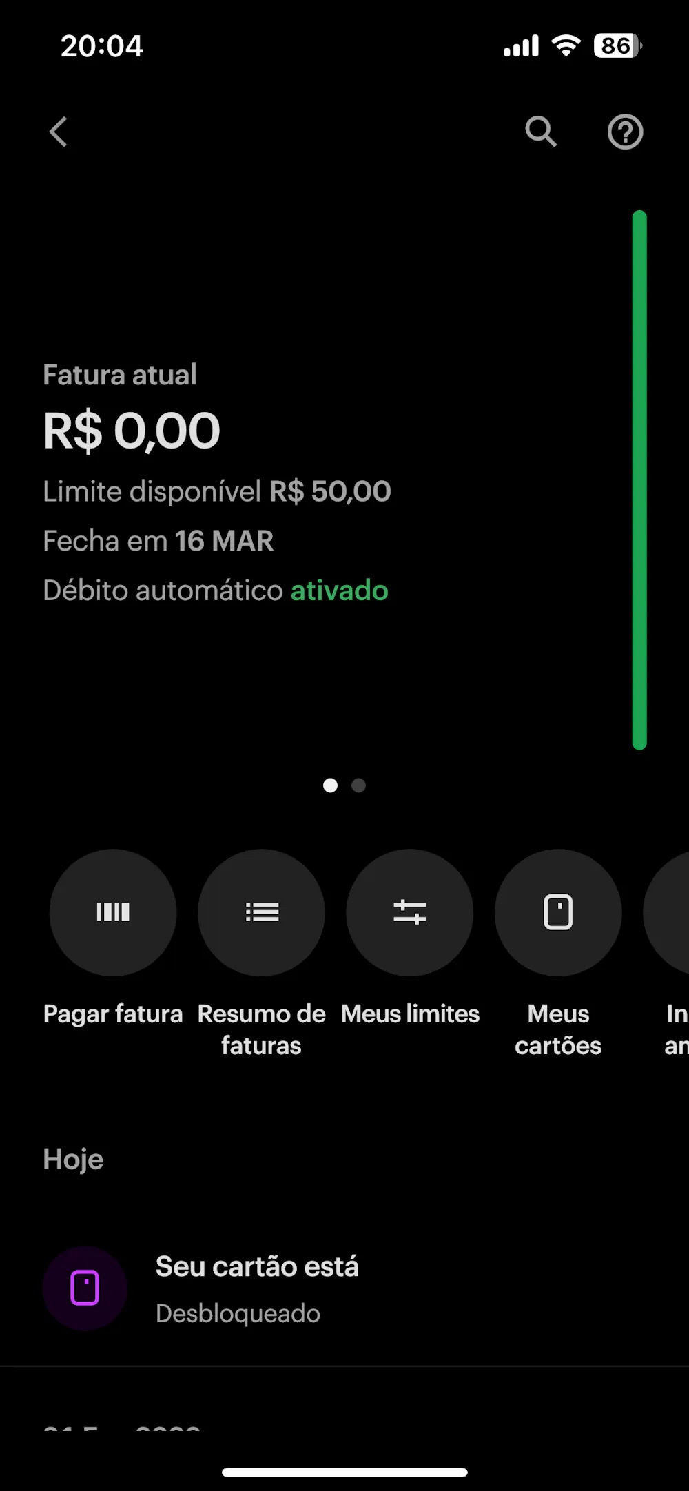 Em 2022, cancelei a função crédito do meu cartão Nubank. Recentemente, voltei a usar a conta e consegui reativá-la.