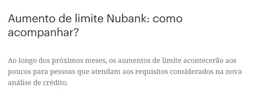 Ok Nubank avisou que irá aumentar limite de 35 milhões de clientes, ate ai tudo bem, mas no mesmo post dela, lá na parte de baixo tem essa questão, então surgiu uma duvida? quais são os requisitos considerados na nova analise de credito? lendo isso tenho uma pequena impressão que não terá aumento pra realmente todo mundo! portanto vamos debater aqui, o que você acha disso?