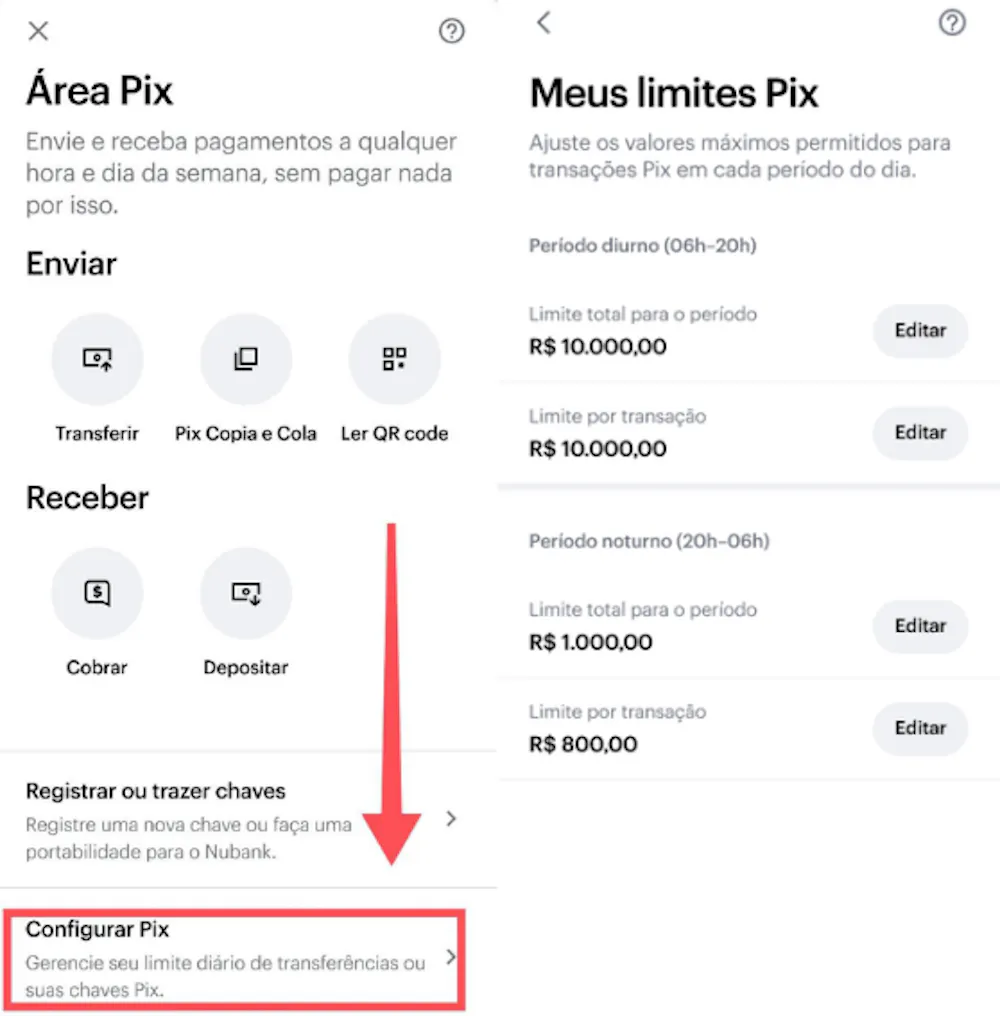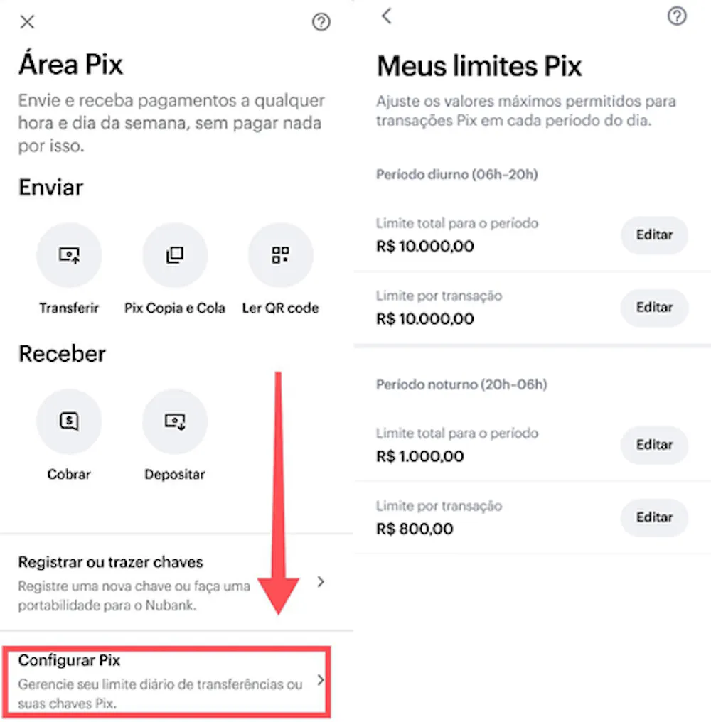 > Como configurar os Meus Limites Pix diurno e noturno