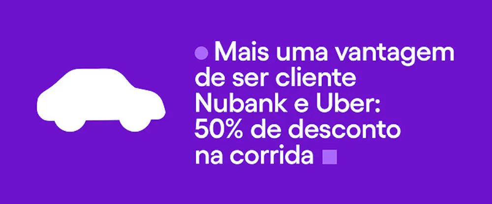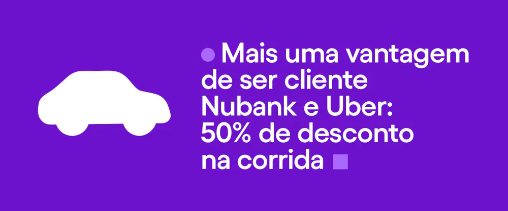 Durante o mês de setembro, quem pagar corridas no app da Uber com cartão Nubank ou NuPay garante 50% de desconto em viagens de até R$ 15.