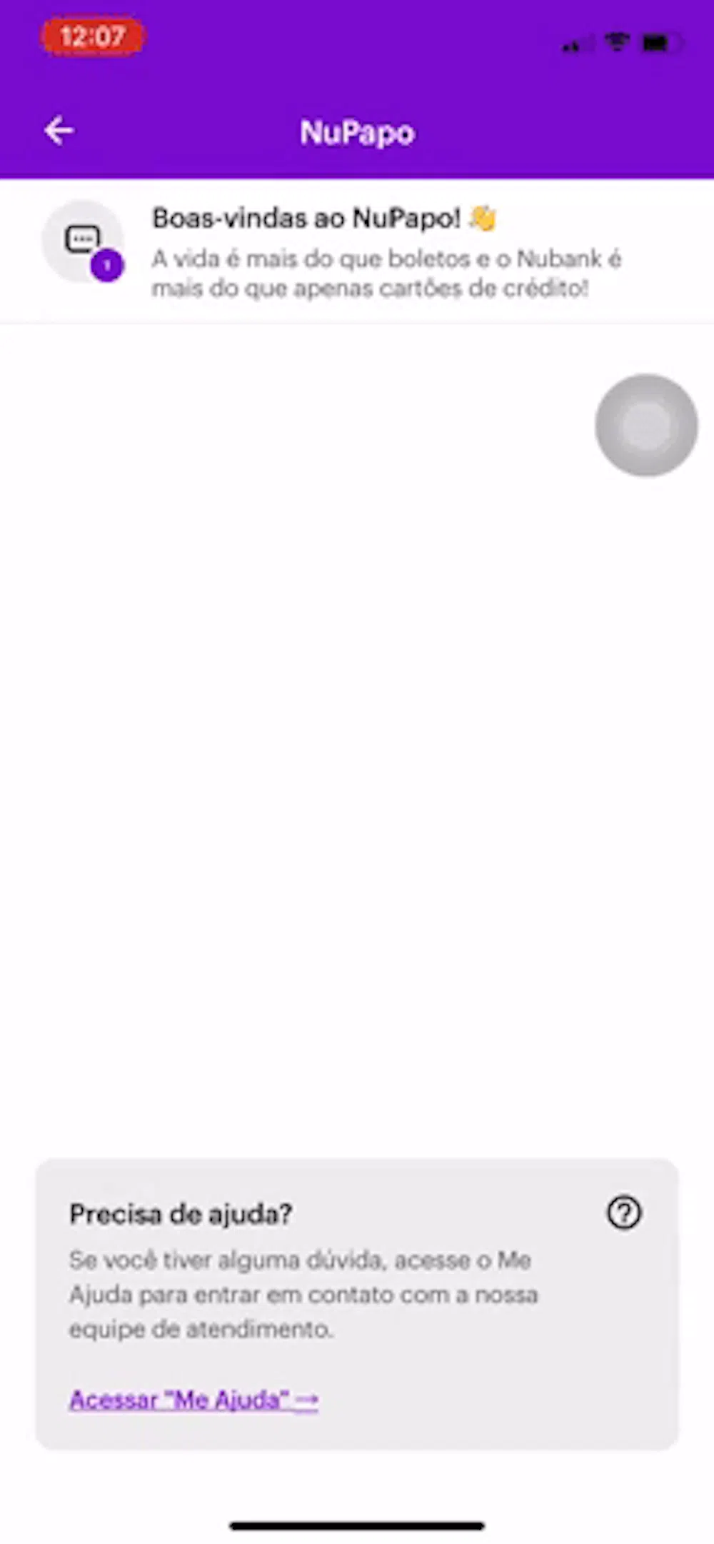 Lembrando que, por enquanto, apenas alguns clientes terão acesso ao NuPapo. Mas não se preocupe, pretendemos adicionar mais clientes no futuro