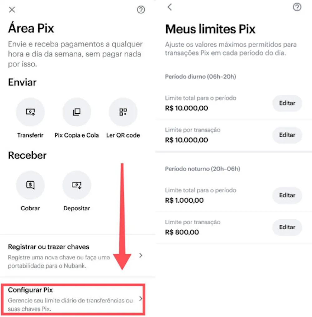 Na próxima vez que abrir o app Nubank e clicar em Pix verá a nova função "Meus limites Pix".