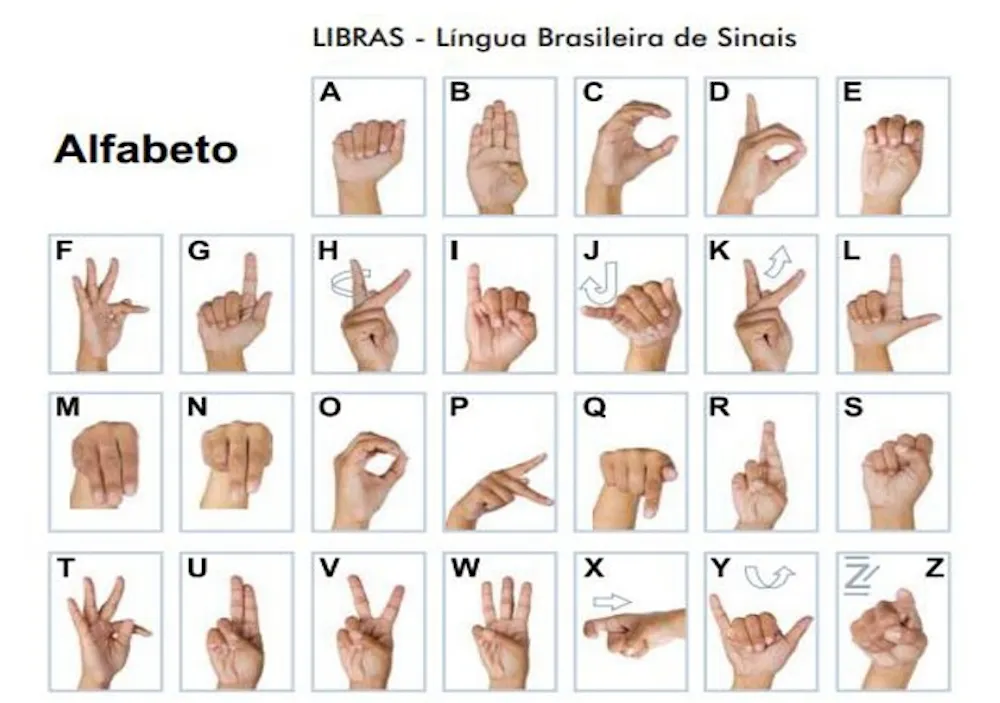 Passo 1 â Aprenda a soletrar seu nome usando o alfabeto manual. Procure na imagem abaixo as letras do seu primeiro nome e treine a soletração. Dica: As letras H, J, K, X, Y e Z tĂȘm um movimento para ser feito, indicado pela setinha. E pode soletrar devagar, sem pressa.