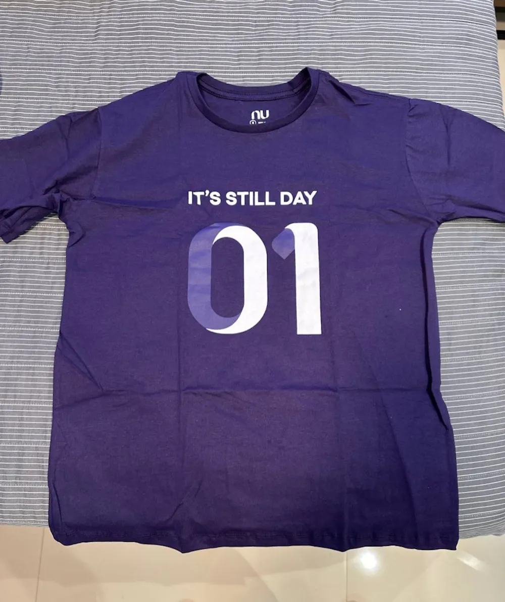 Nesse meio tempo, ganhei uma camisa do Nubank há alguns meses.
