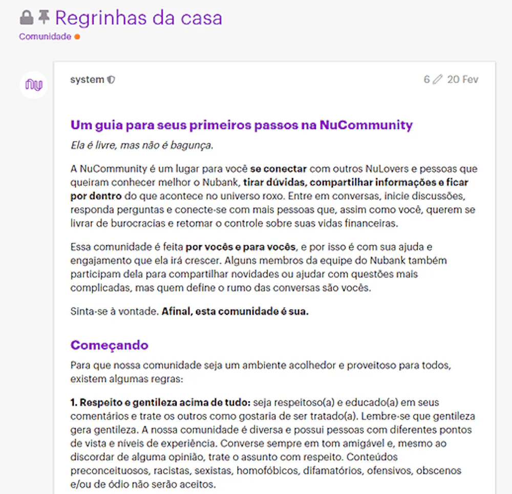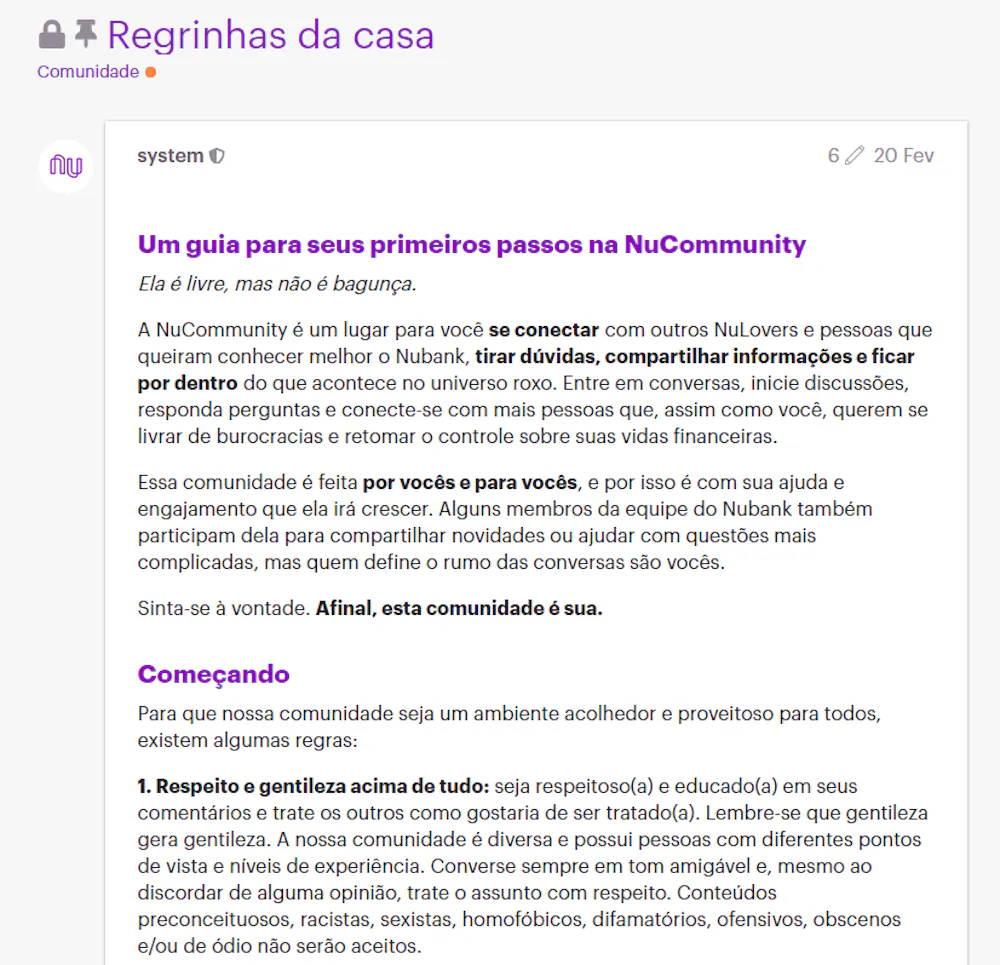 1 - Conheça as regras da NuCommunity!
