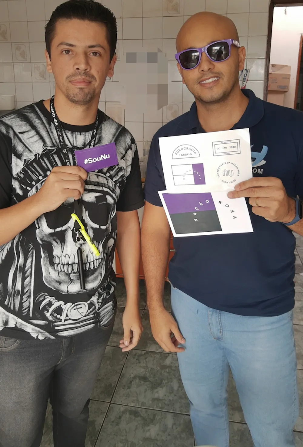 E quando isso aconteceu eu pensei : Ele não é um cliente novo, mas é um cliente que não estava mas com a gente, e agora está de volta. Então porque não fazer essa ação com ele ? E assim eu fiz. Peguei o Kit que e foi enviado e acrescentei algumas coisas a mais para dar as Boas Vindas a ele na Comunidade e também a volta dele para o Nubank, hoje tiramos essa foto, super estilosa com os presentes: