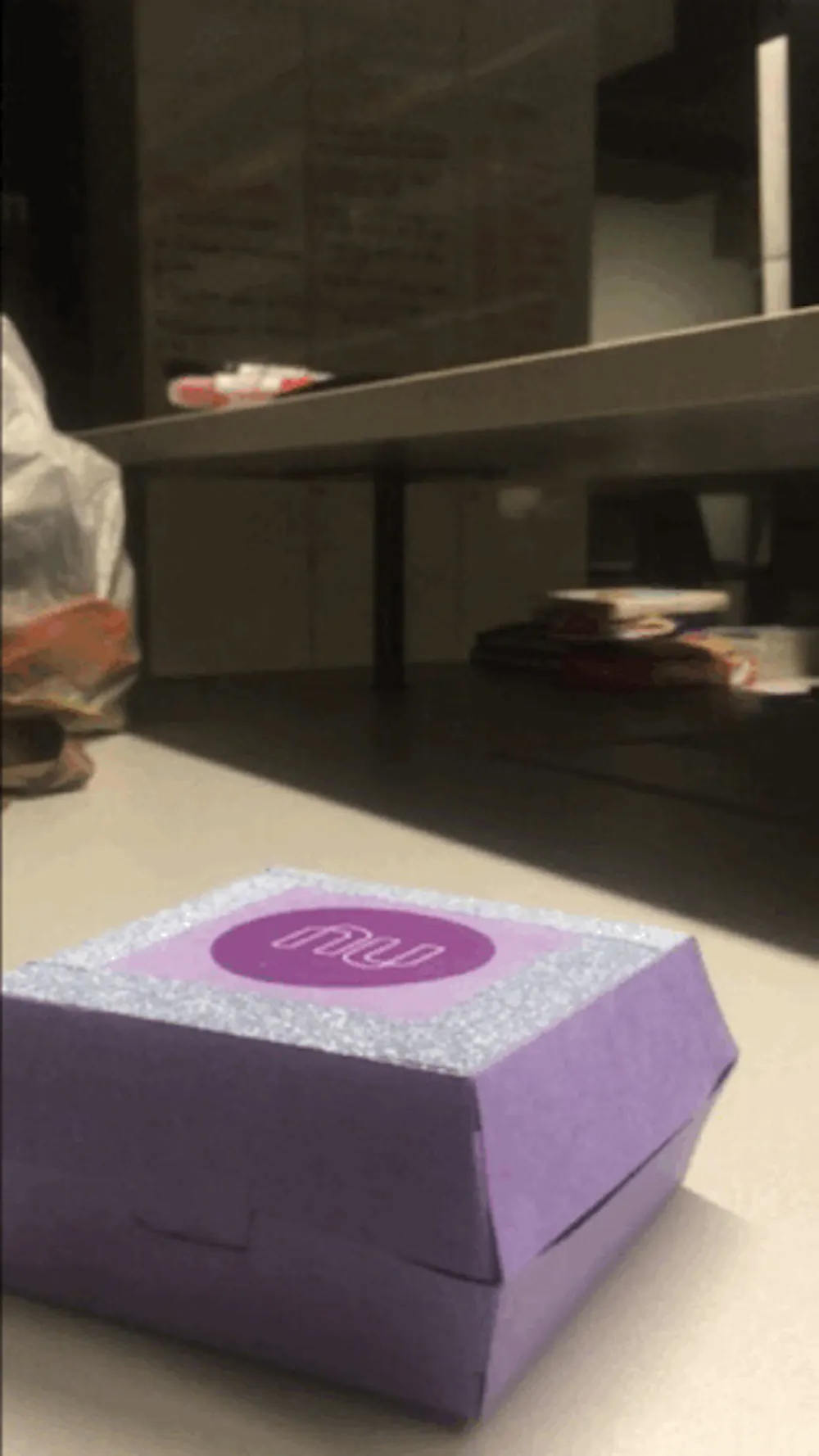 Durante o atendimento a cliente brincou que estava chateada pois, com a confusão do bloqueio, não havia conseguido comprar um lanche em sua rede de fast food favorita. Como a conversa havia sido muito descontraída, Lola decidiu surpreender Juliana enviando uma caixinha feita com papel roxo, imitando as embalagens usadas para guardar sanduíches. Além disso, a cliente recebeu em casa uma luminária em formato de batata frita e uma cartinha personalizada, escrita pela própria Xpeer – como nos referimos ao time de atendimento aqui no Nubank.