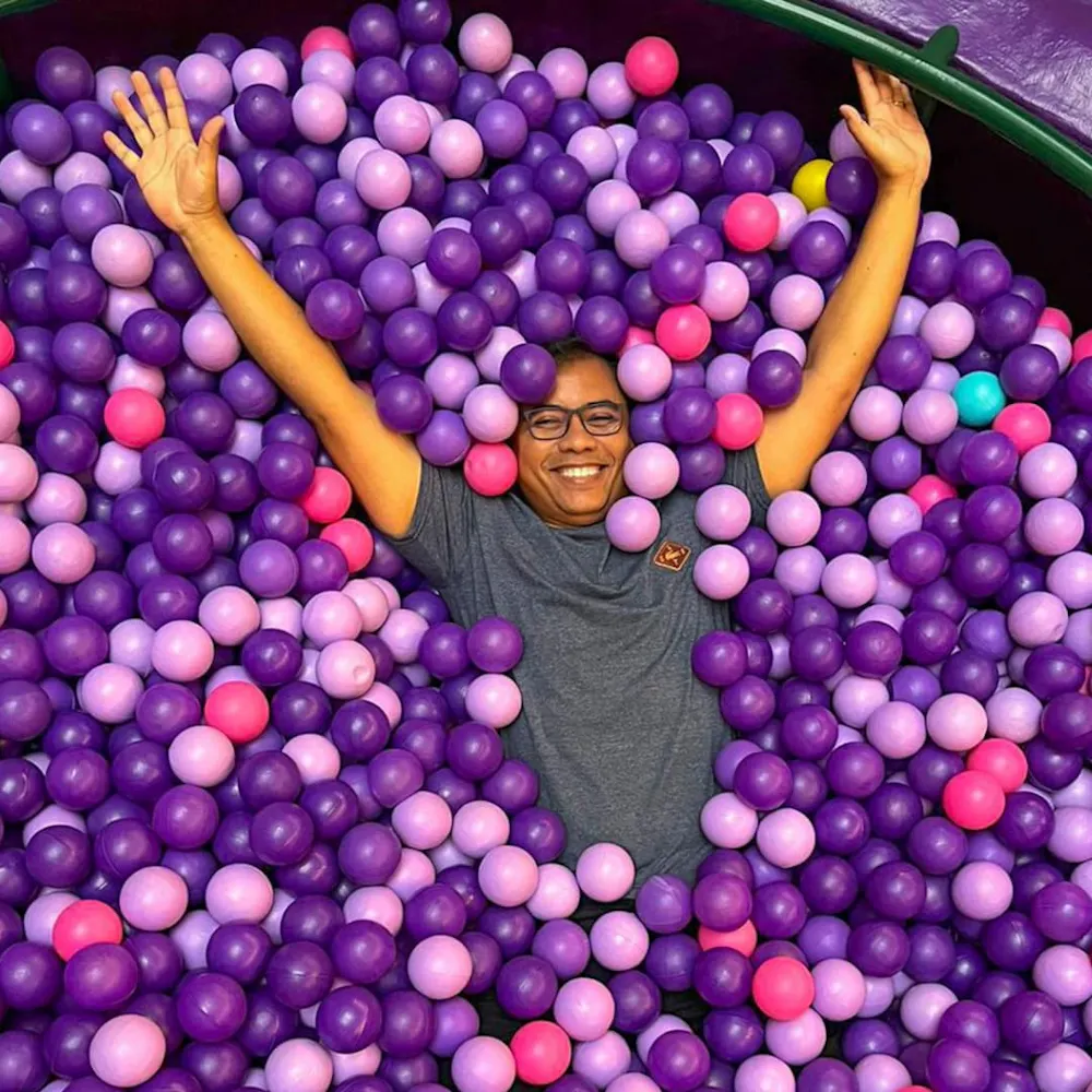 E é claro que tinha que dar um pulo na piscina de bolinhas, não é mesmo?