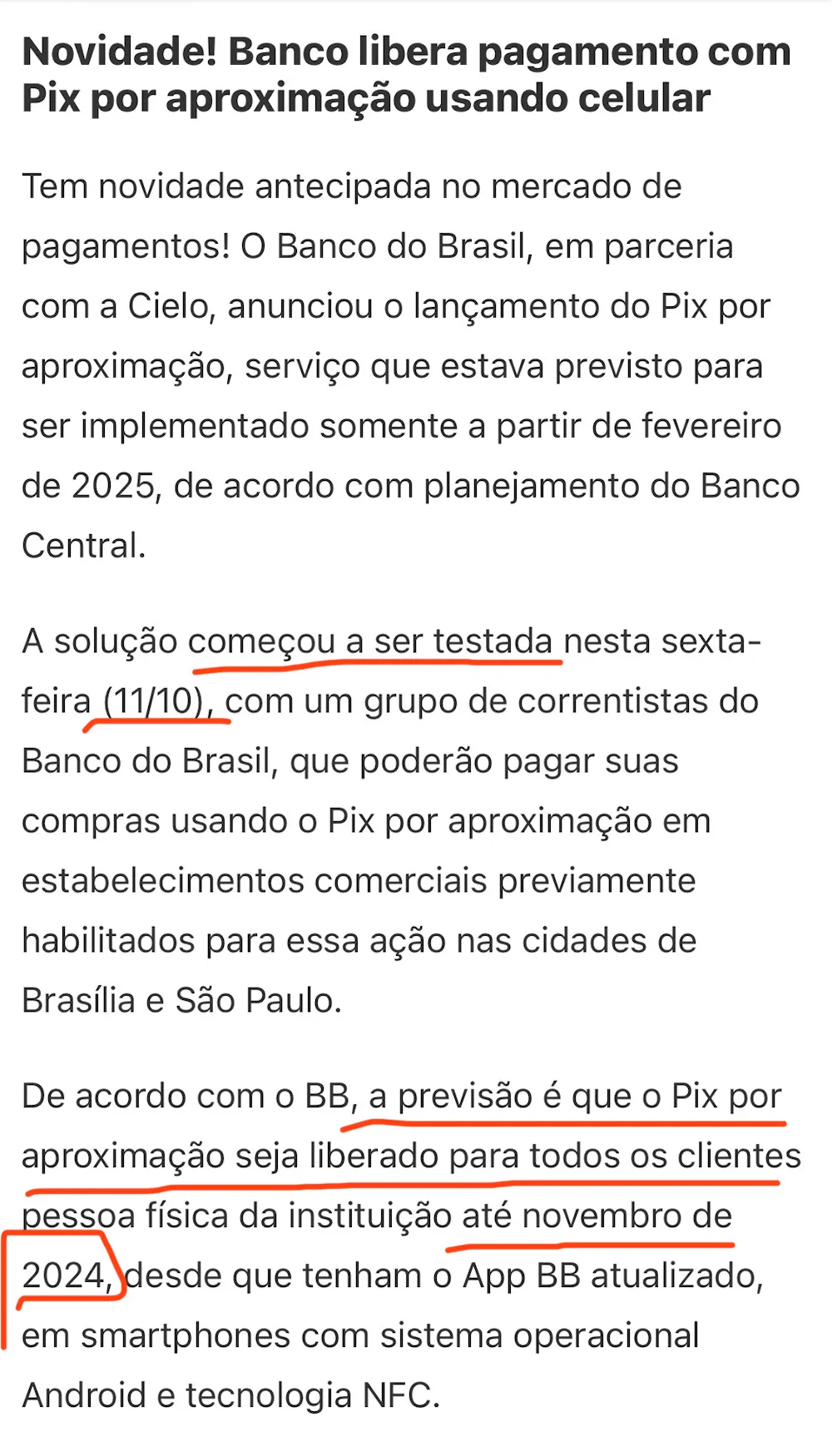 Olha o BB aí começando os testes hoje com alguns clientes e já afirmando que em 1 mês TODOS os clientes já vão ter esta função disponível no app.