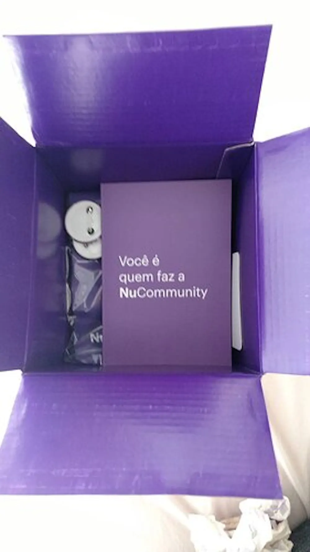 Hoje recebi uma caixinha toda linda da Nubank me convidando a participar da Nucommunity e, coincidentemente, logo em seguida eu recebi o convite por e-mail.