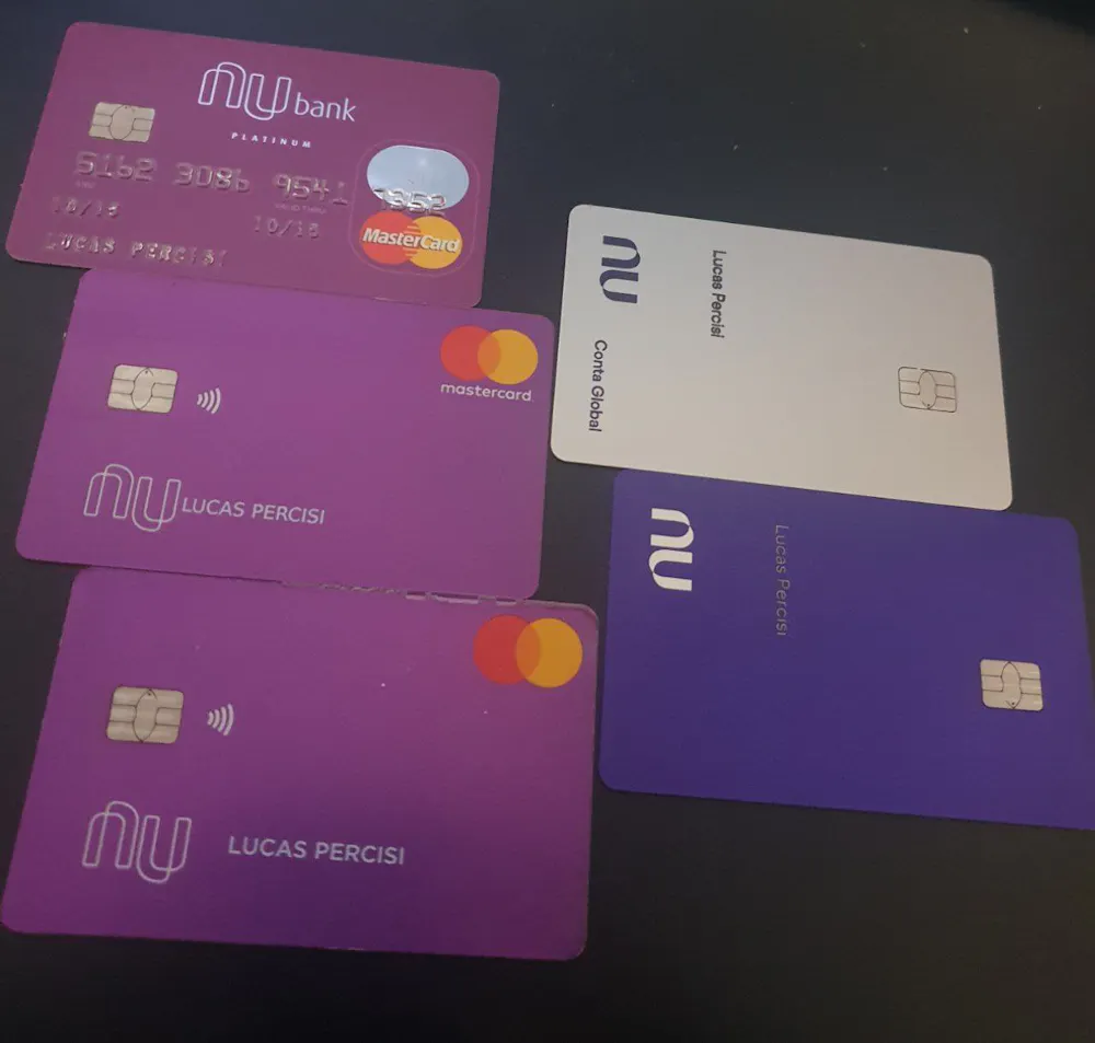 Desde que me tornei cliente NuBank, em 2015, nunca tive coragem de jogar fora os cartões antigos. Hoje estamos assim, do primeiro até o UltraVioleta. E vocês? Tambem guardam seus cartões? photo_5116451401805966757_y1278×1218 121 KB