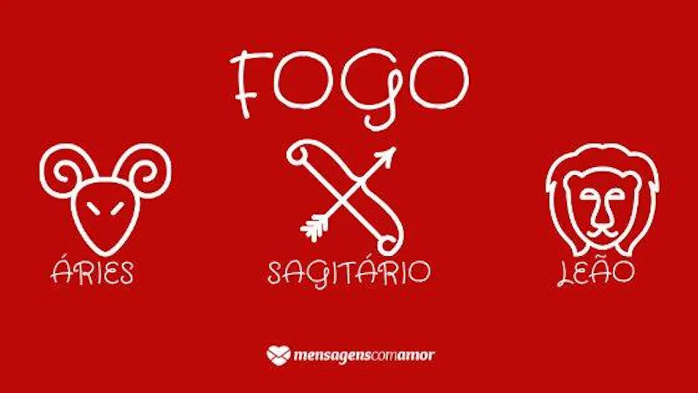 Os signos de fogo são: áries, leão e sagitário. Algumas das características desses signos são: inteligentes, auto conscientes, criativos e idealistas, sempre prontos para a ação. Motivados, as pessoas desses signos são prestativos, além de perseverantes e apaixonados.