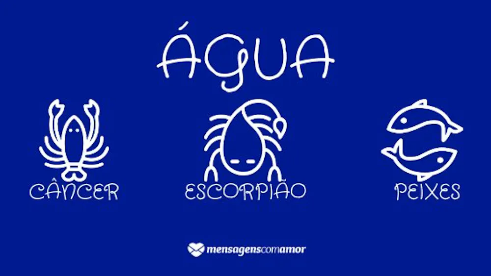 Os signos de água são: câncer, escorpião e peixes. Algumas das características deste signo são: adoram conversar, são emocionais e sensíveis, possuem uma memória ótima, e estão sempre apoiando os amigos.