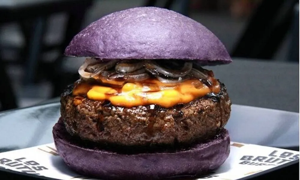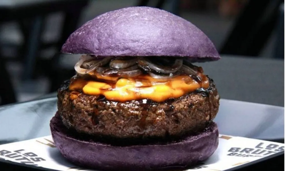 Esse exótico Hambúrguer, tem o nome de O Bizarro, mas poderia, facilmente, levar o apelido de Hambúrguer Nubank! Você concorda?