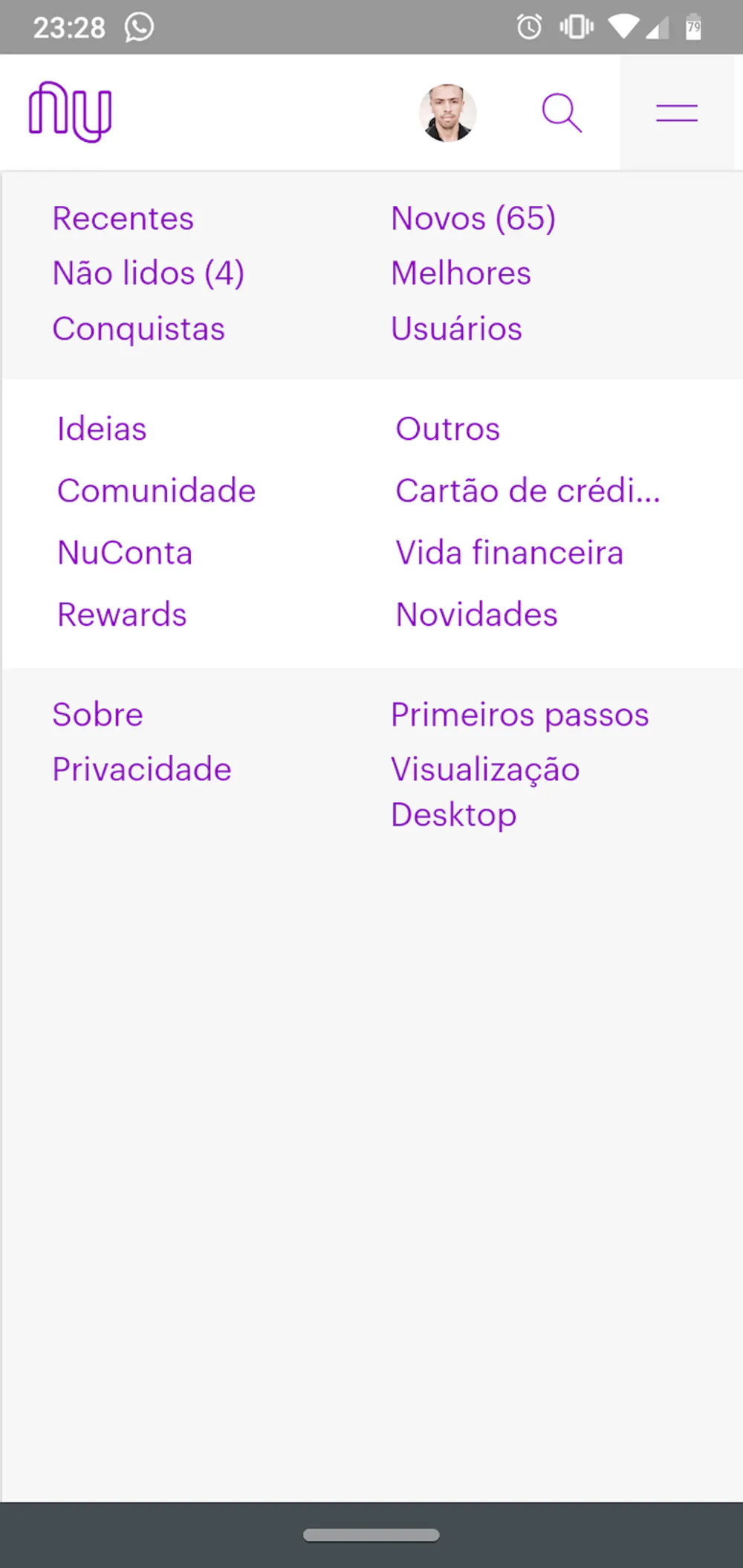 A NuCommunity é um lugar para você compartilhar experiências, aprender e se conectar com outros clientes que buscam uma vida financeira mais leve e ficar por dentro de tudo que acontece no universo roxo.