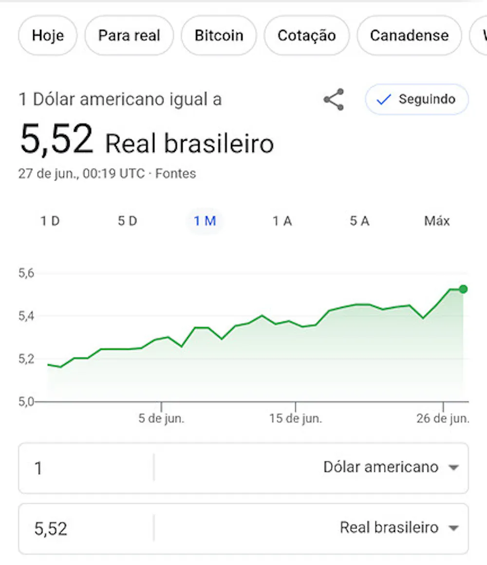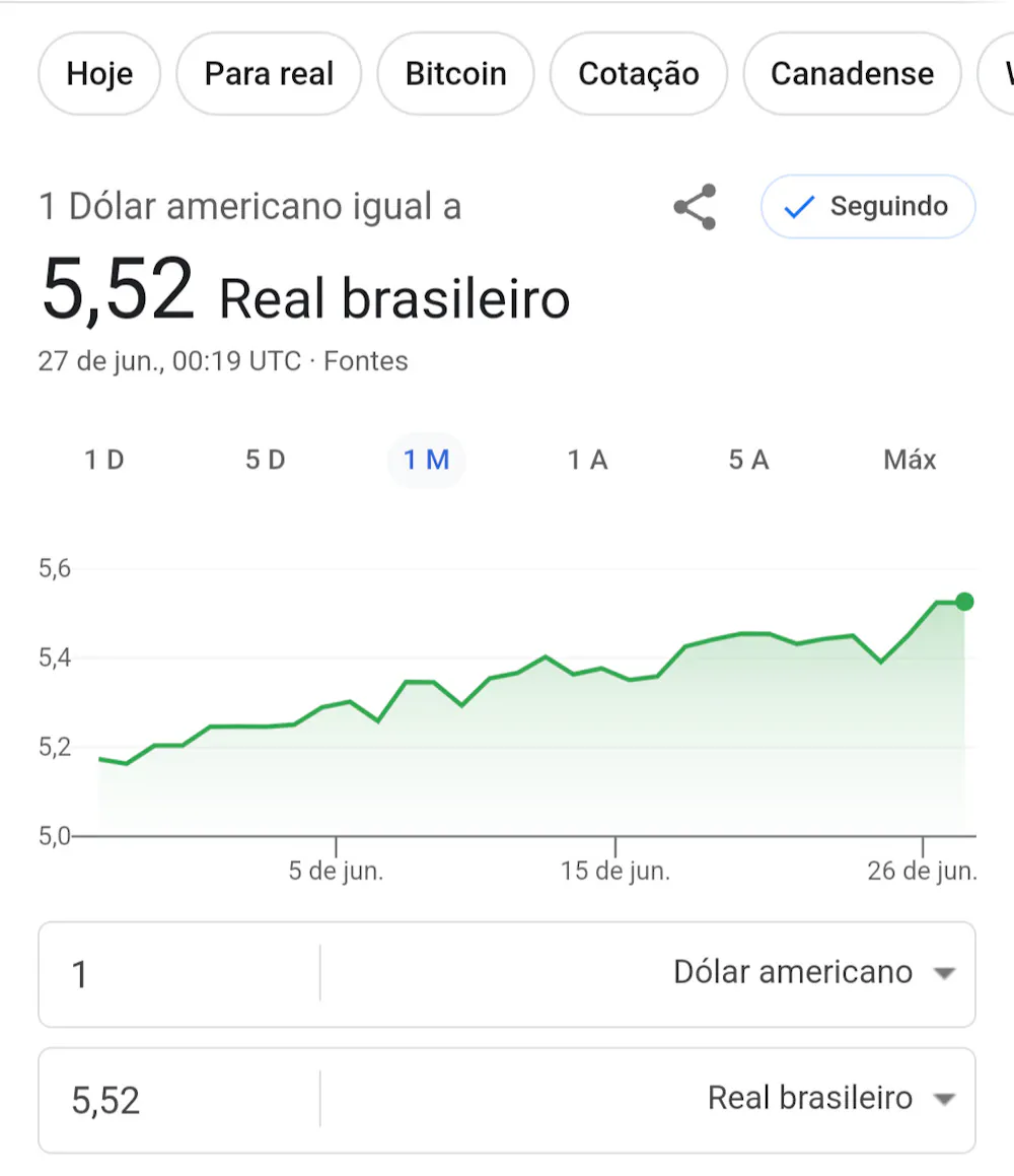 Tenho pena da população mais carente, pois eles são os que mais sofrem com essa alta, mas… 37% dos meus investimentos são em Dólar, investidos na época do Dólar a R$ 4,15 (2019)… então eu quero mais é que suba e bata na lua! Screenshot_20240626-2124211080×1252 99.9 KB