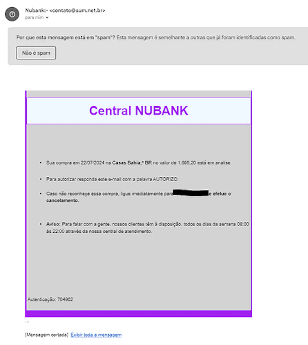 Compartilho com vocês mais um e-mail (spam), com tentativa de golpe que recebi. Acho que já recebi uns dois ou três, este ano!