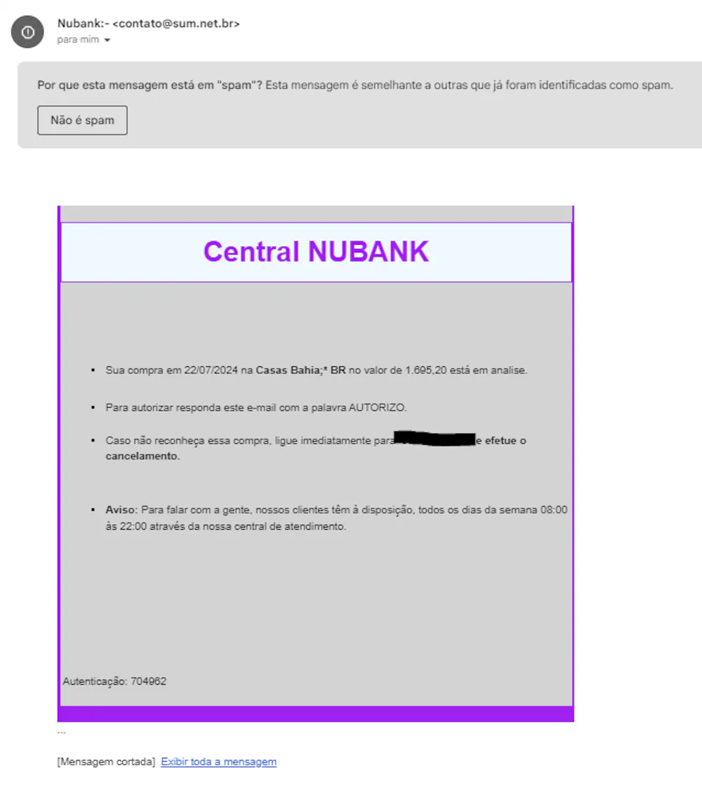 Neste caso, não cliquei em nenhum link, não liguei no telefone que tarjei de preto e desconsiderei / exclui a mensagem.