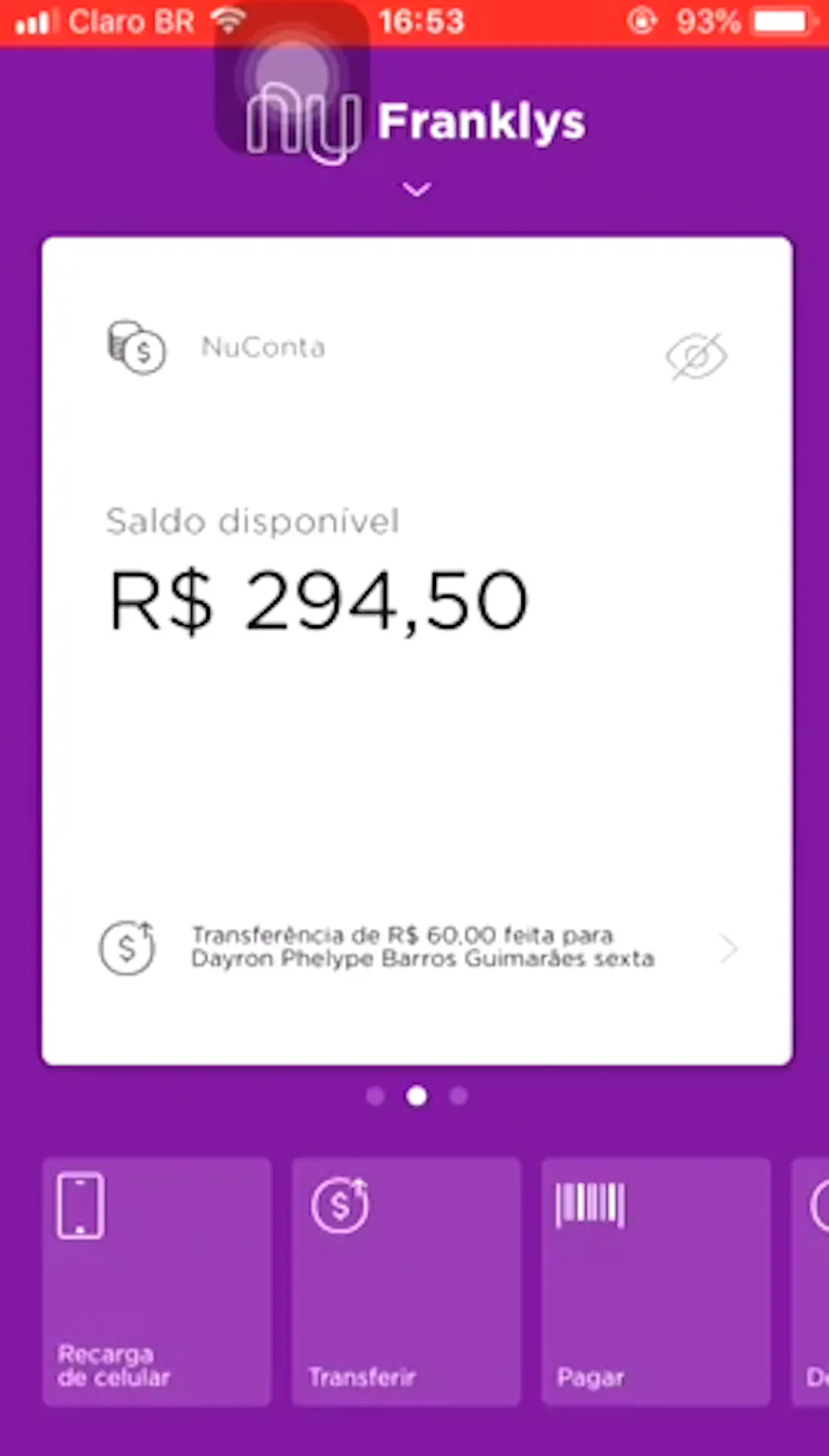 - acontece que sempre que faço um nova compra o valor é atualizado na tela de dentro da NuConta,