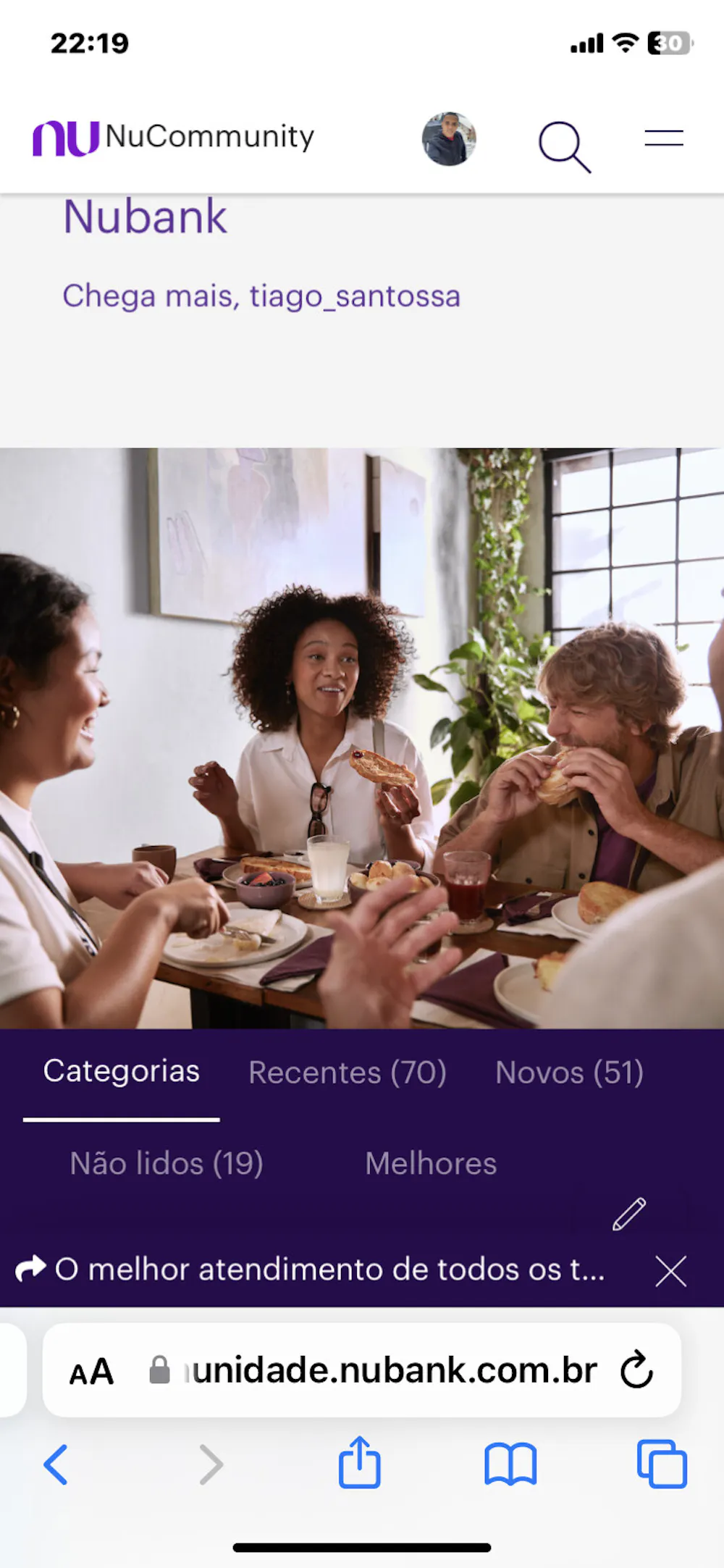 Quero dar os parabéns a todos os participantes ativos da NuCommunity. Gosto muito de participar dessa comunidade, pois aqui eu vejo pessoas super atenciosas e educadas, dispostas a tirar todas as nossas dúvidas em relação a tudo o que envolve o Nubank. Desejo que continuem sempre assim, e que mais pessoas possam participarem ativamente da NuCommunity.