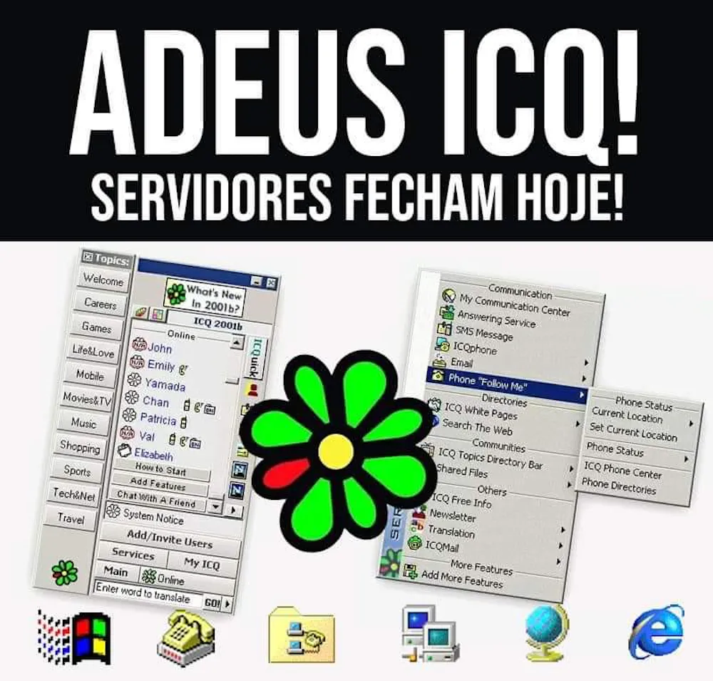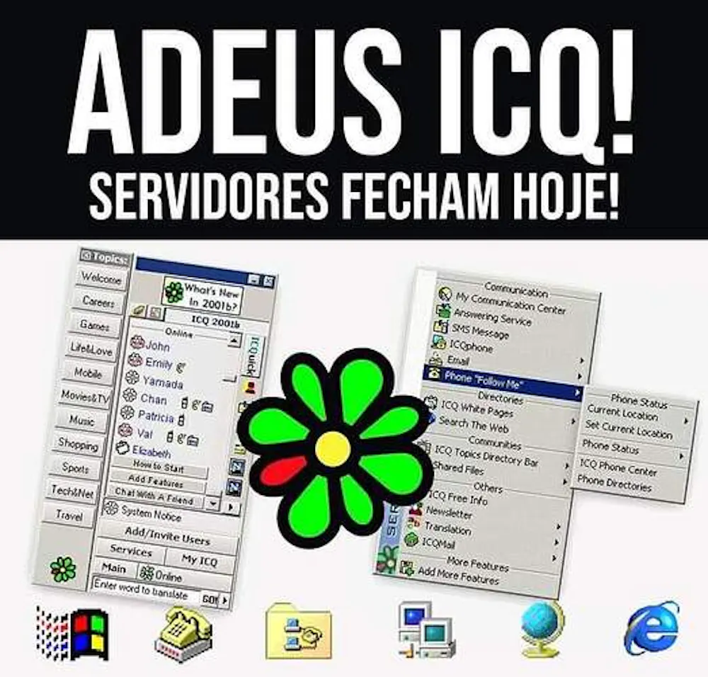 O famoso e excelente ICQ encerra hoje (26/06/2024) suas atividades. Seus mais de 100 milhões de usuários com certeza irão sentir saudades! E aí!? Quem usou, ou ainda usa, o ICQ? FB_IMG_1719422921641800×764 68.7 KB