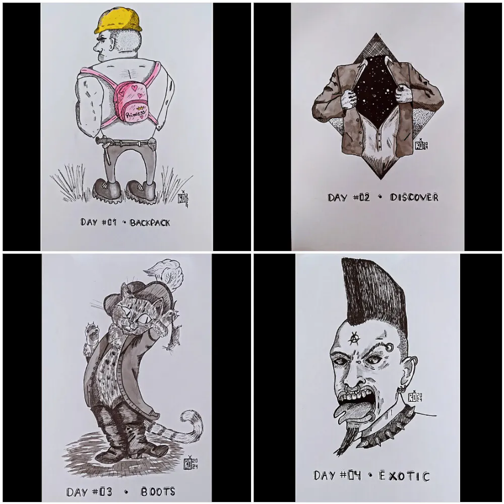 Eu estou em meu segundo ano consecutivo me desafiando, e confesso que a cada desenho postado lá no Instagram me sinto mais confortável com os resultados, tendo em consideração que a produção deve ser feita de forma simples já que o desafio é também uma corrida contra o tempo.