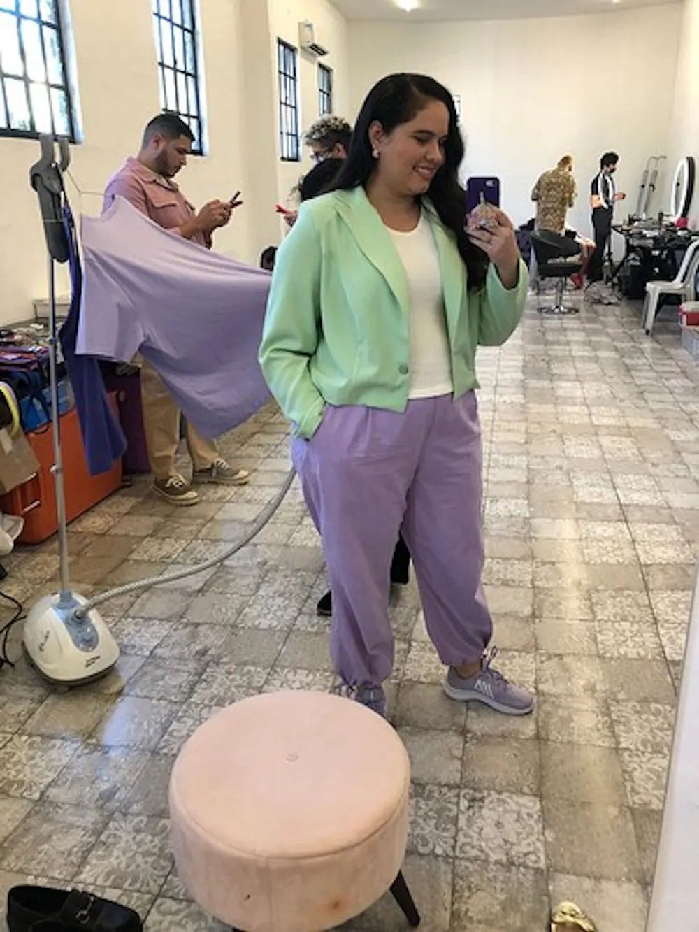 Esperando entre uma gravação e outra (queria levar esse lookinho pra casa de tanto que eu amei!).