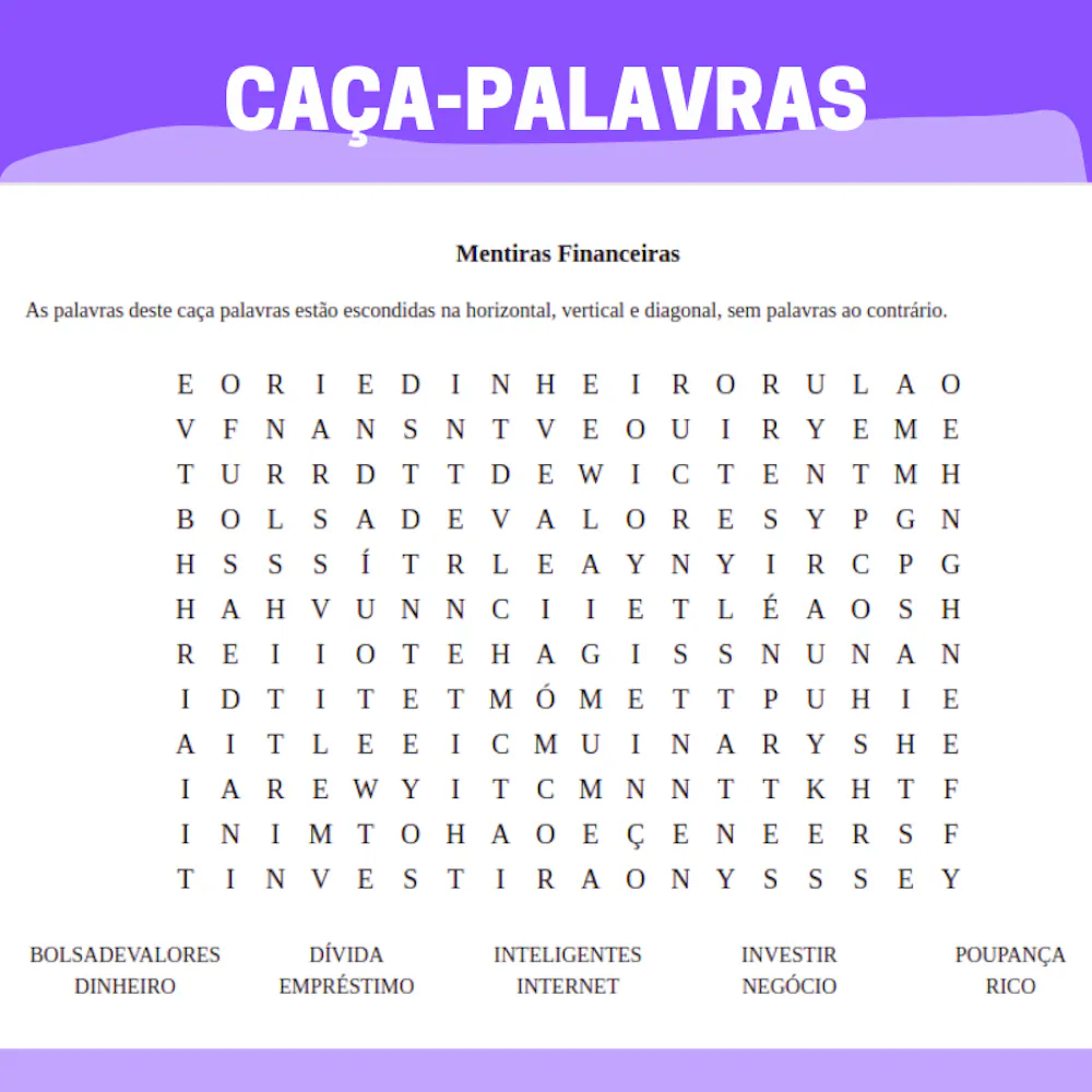 Qual a primeira palavra que você achou? Qual a mentira financeira que você já ouviu sobre ela? Conta aqui pra gente!