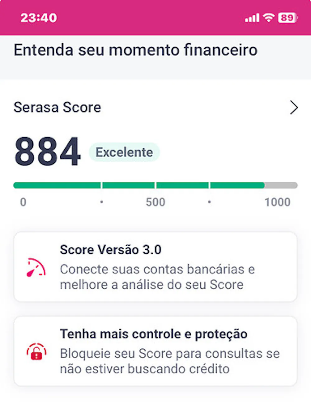 IMG_4729750×976 96.8 KB Sempre busquei pagar todas as minhas contas antes do vencimento e nunca deixei atrasar nenhuma. Por conta disso o meu Score de Crédito no Serasa consumidor aumentou bastante e hoje está assim…