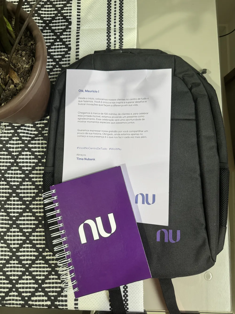 Acabou de chegar aqui um presentinho em comemoração do Nubank chegar na marca de 100 milhões de clientes.