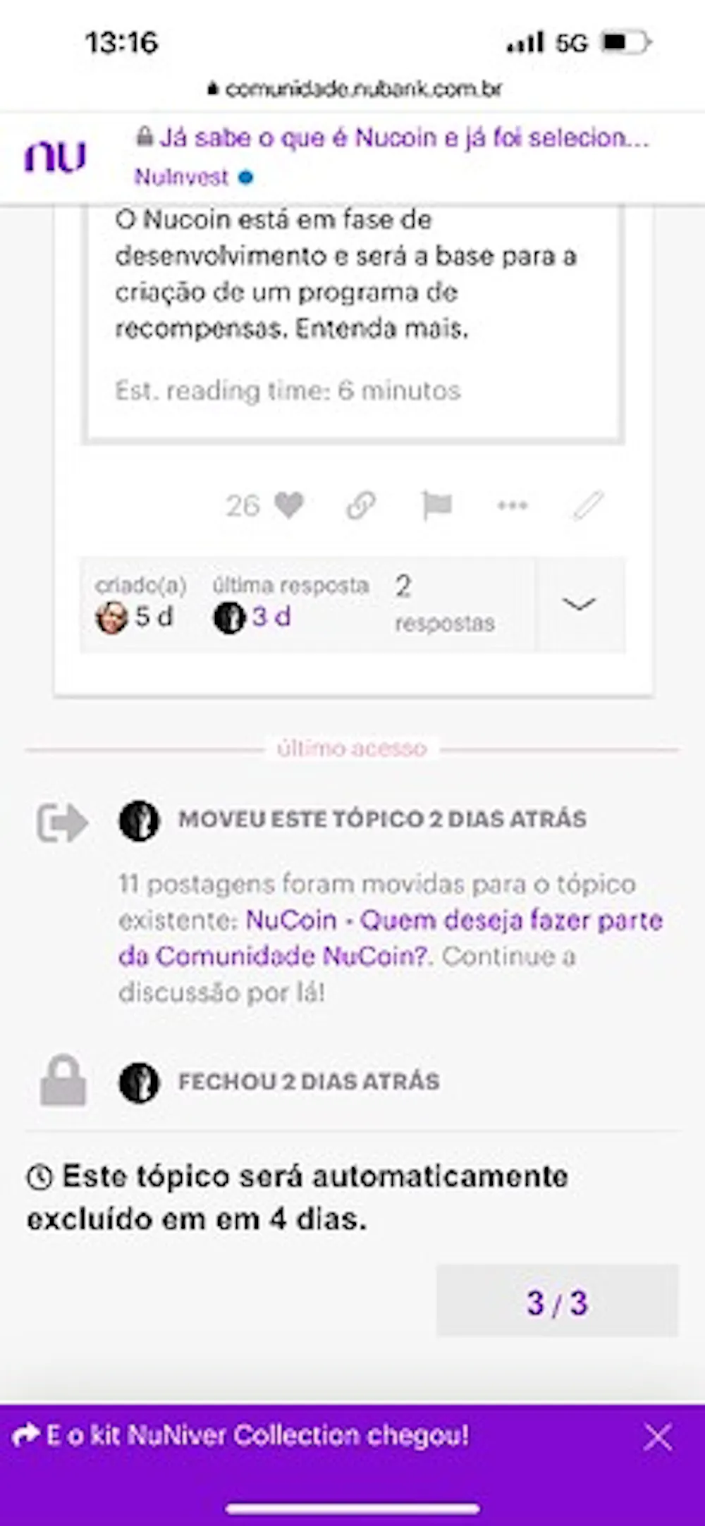 Escrevi essa mensagem e agora fui acessar e vi que mudou para outro título e diz q será apagado em 4 dias. Passado imagem1284×2778 152 KB