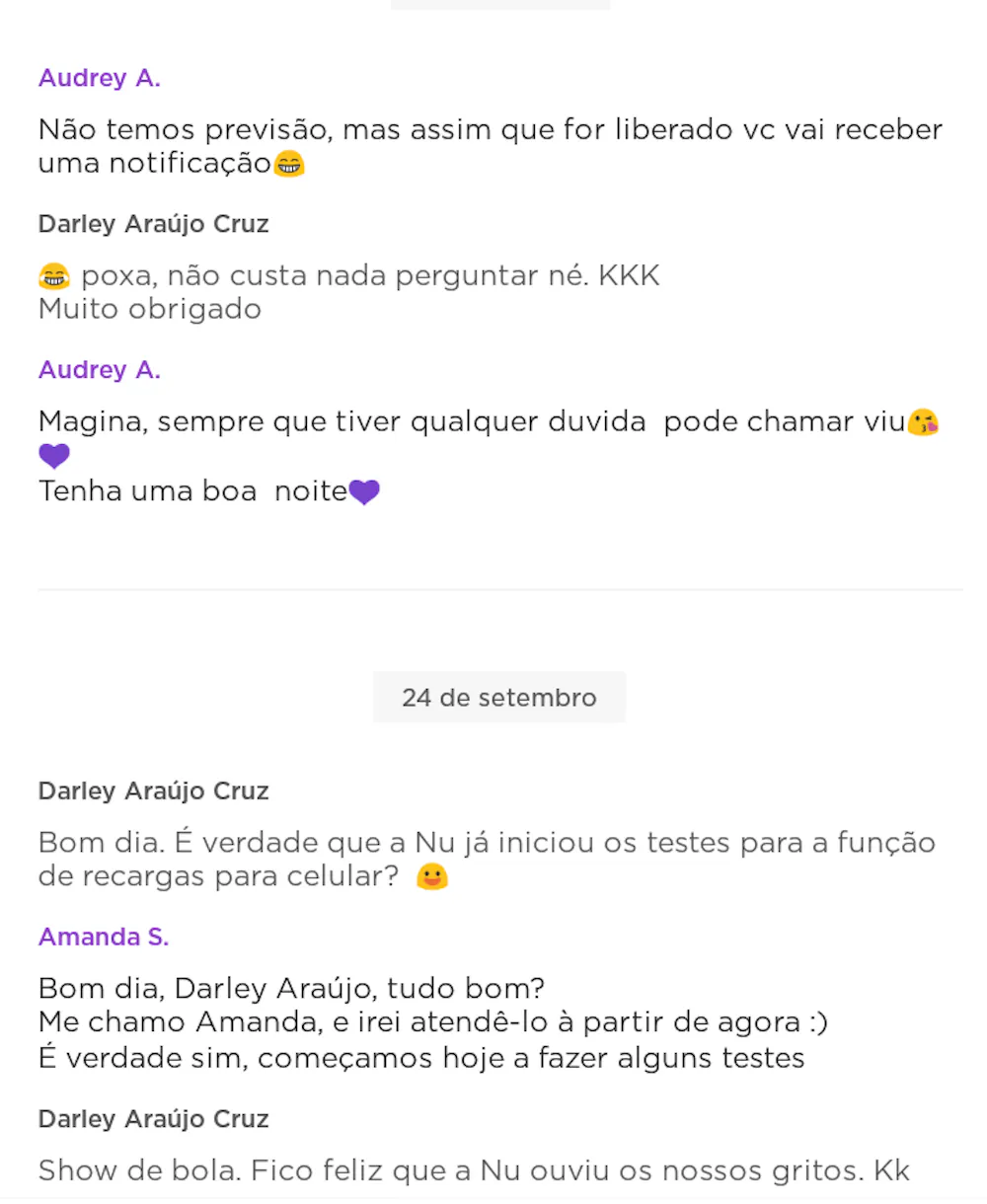 Bom dia galera, hoje pela manhã sites como Estadão, Terra, anunciaram que Nubank deu início aos testes da função tão desejada pelos Nu’s “a função de recarga para celular”.