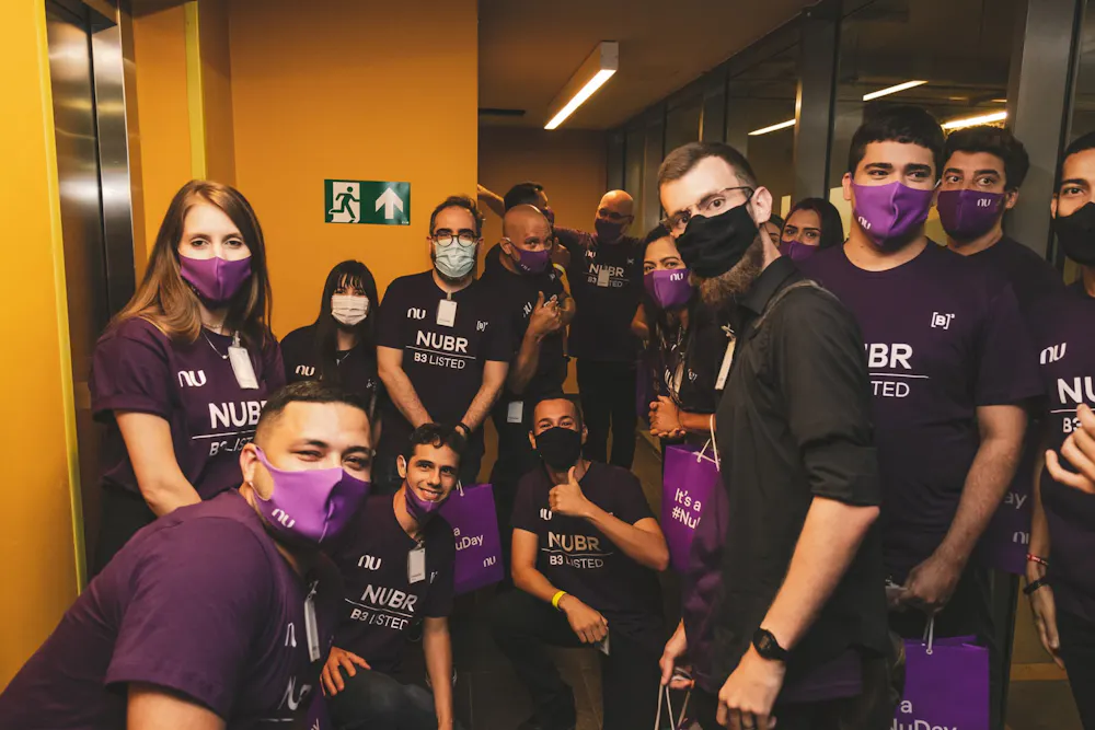 É isso mesmo! Convidamos os NuLeaders e NuMentors para passarem três dias especiais em São Paulo, conhecerem o escritório do Nubank e participarem da cerimônia de entrada no Nu na B3!