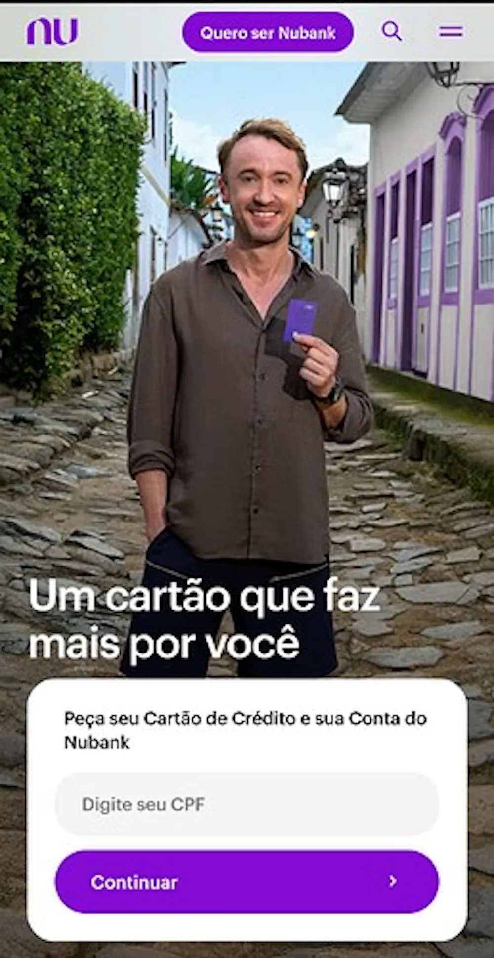 Já pensou se daqui a pouco aparece também o Daniel Radcliffe, o nosso eterno Harry Potter, na home do Nubank e nas campanhas de marketing? Seria um sonho, né?