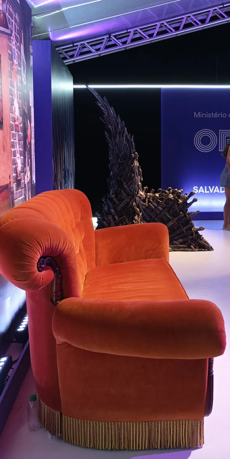 Havia uma tenda com ativação do Nubank funcionando todos os dias e reiniciando a cada sessão. A decoração contava com réplicas do Sofá de Friends e o Trono da Casa do Dragão para tirar fotos, disputadíssimos! 🙄