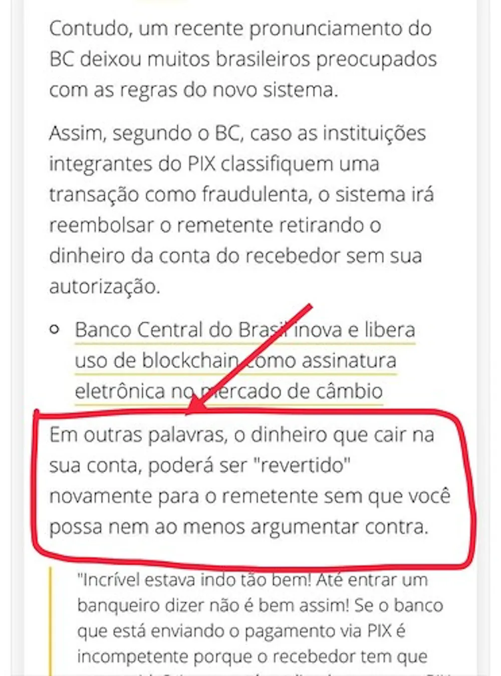 Viram essa? Se vc receber um PIX e a pessoa que enviar o dinheiro alegar ser uma fraude, o BC pode retirar o dinheiro da sua conta sem sua autorização. Screenshot_20200921-231520862×1159 249 KB