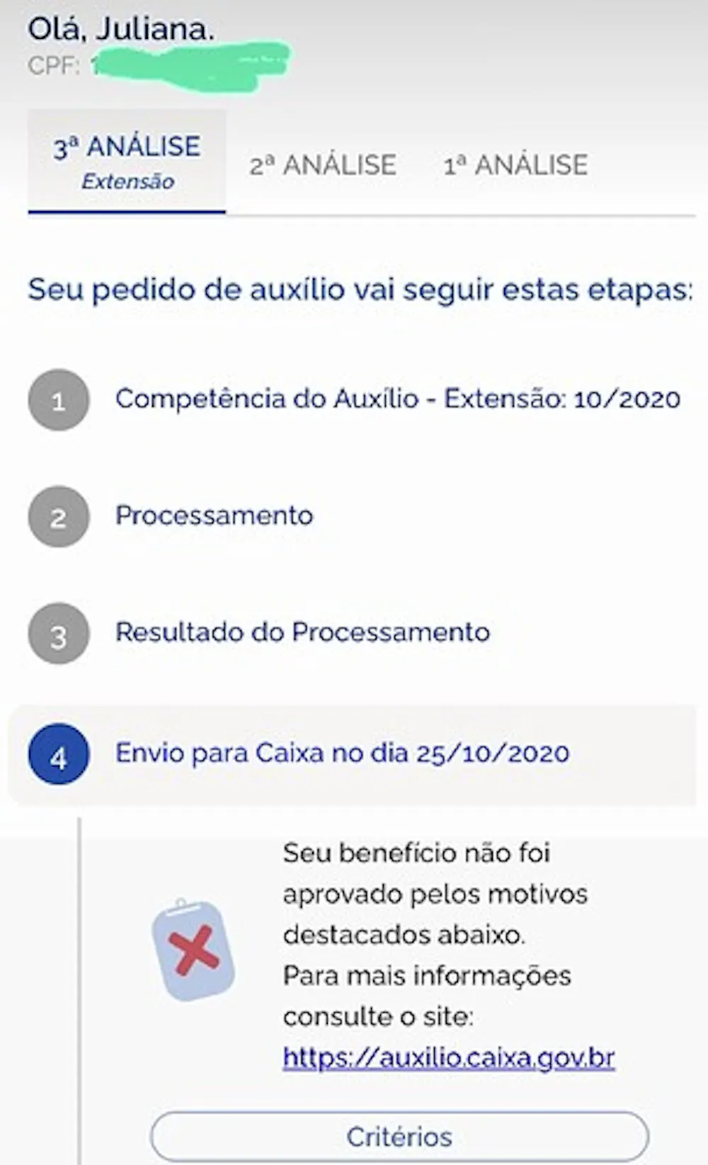 Não fui contemplada a receber a extensão do auxílio emergencial,já tentei recorrer ate judicialmente pela internet (porque tem essa opção ) mais não da em nada.