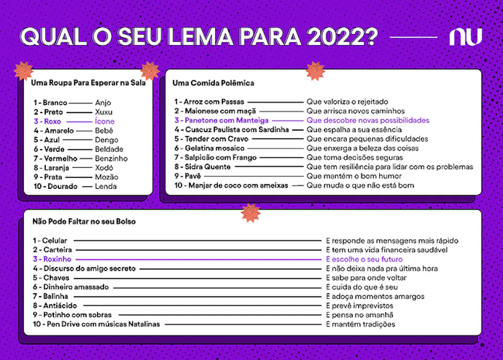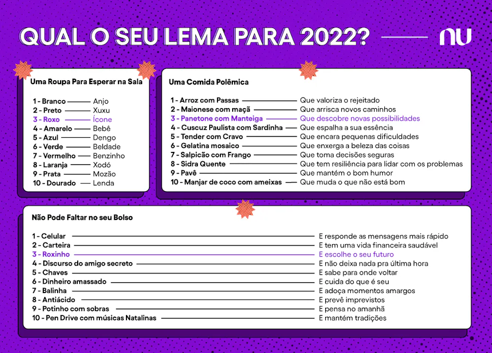 E por que não uma frase motivacional pra começar com o pé direito? Pra saber quais serão seus lemas de 2022, é só escolher a opção de cada coluna que mais te represente e juntar tudo depois. Ah! Se não escrever o seu nos comentários, não se concretiza.