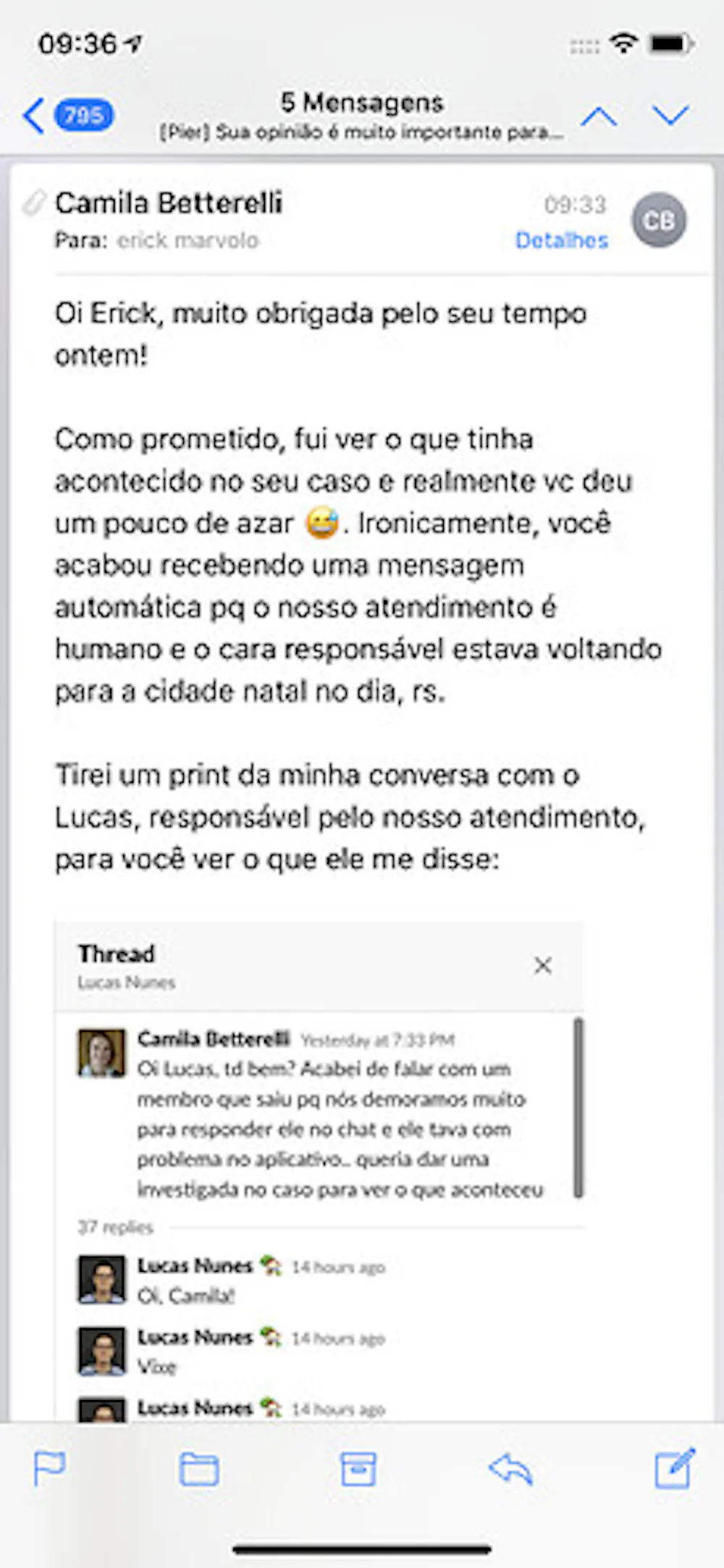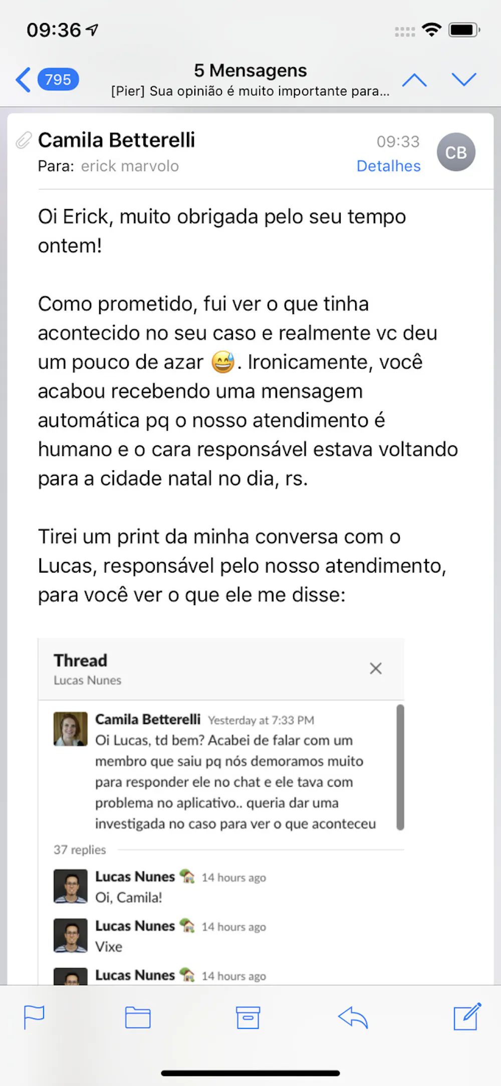 E ela me enviou um e-mail mostrando que foi atrás de saber oque tinha acontecido.