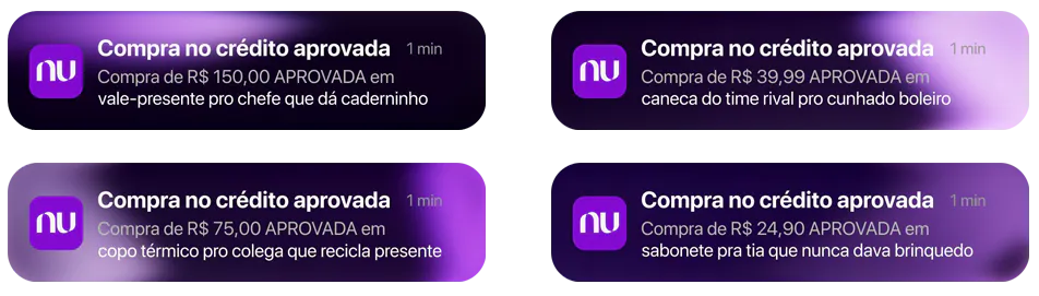 Imagine só como seria se cada compra aprovada no cartão do Nubank viesse acompanhada de um nome diferente na fatura. Aquela notificação ganharia um significado especial, principalmente quando fosse a compra do presente daquela pessoa que você tirou no amigo secreto, seja um colega da firma, um amigo ou alguém da família.