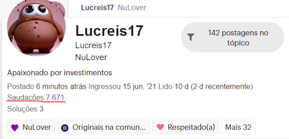 1° passo: Encontre algum comentário seu na comunidade do nucoin