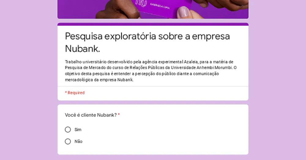Oi galera, tudo bem? Passando por aqui para pedir ajuda com uma pesquisa da faculdade. Se você puder responder, ficarei muito grata! Leva menos de 2min, garanto.